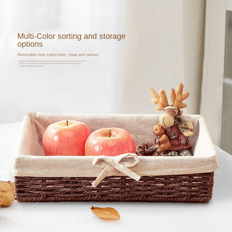 Woven Imitation Rattan Storage Baskets Straw Rattan Basket Desk Organizer Picnic Basket Fruit Storage Box Cosmetic Storage Container