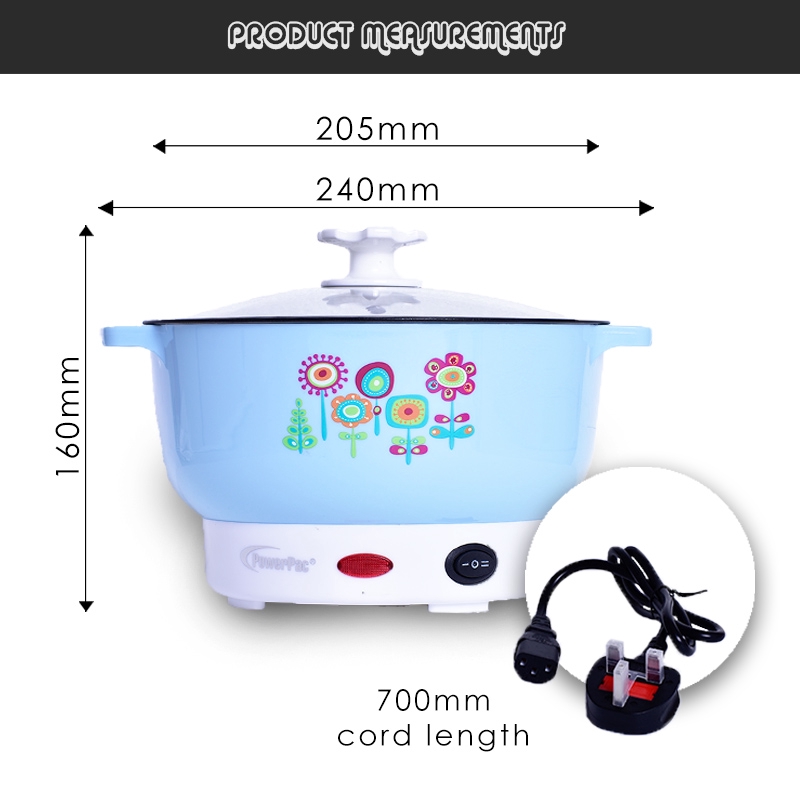 PowerPac Electric Multi cooker 2.0L steamboat noodle cooker hot pot with non stick inner pot (PPMC525)