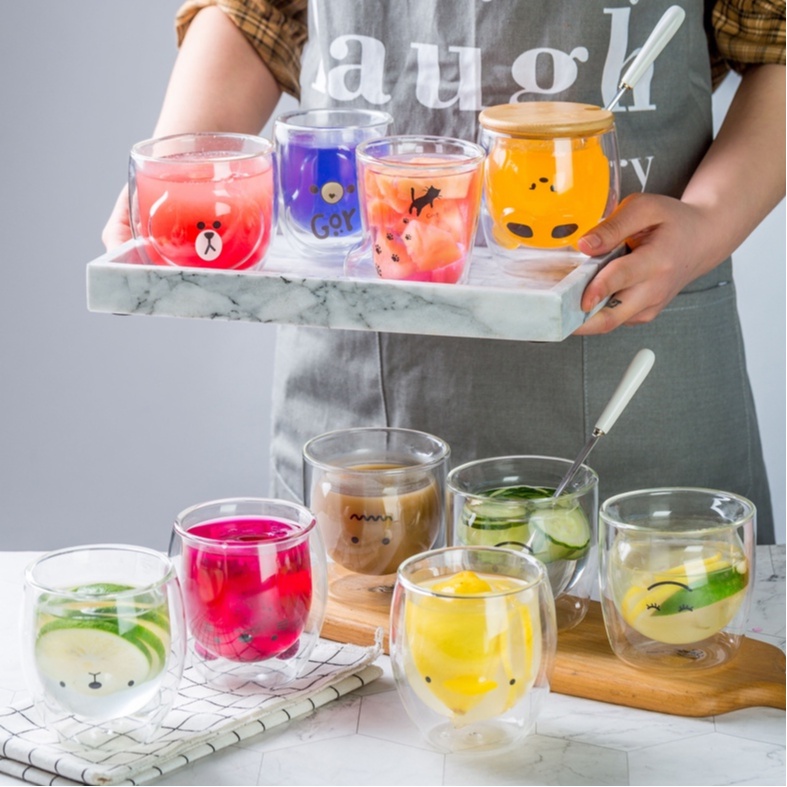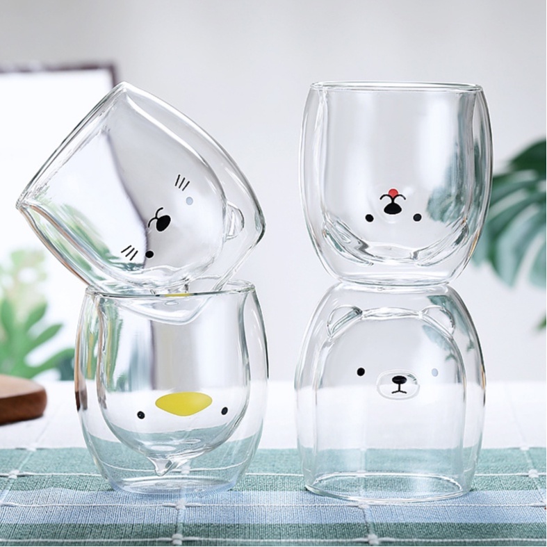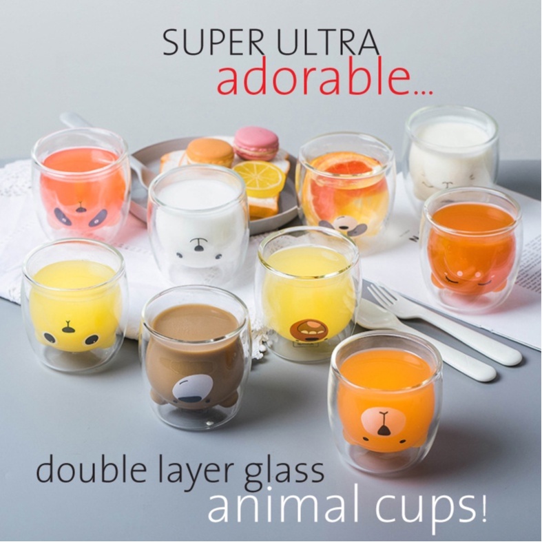 SG STOCKS Glass Cup Double Layer Wall Cups Animal Drinking Mug Coffee Tea Kitchen Christmas Gift