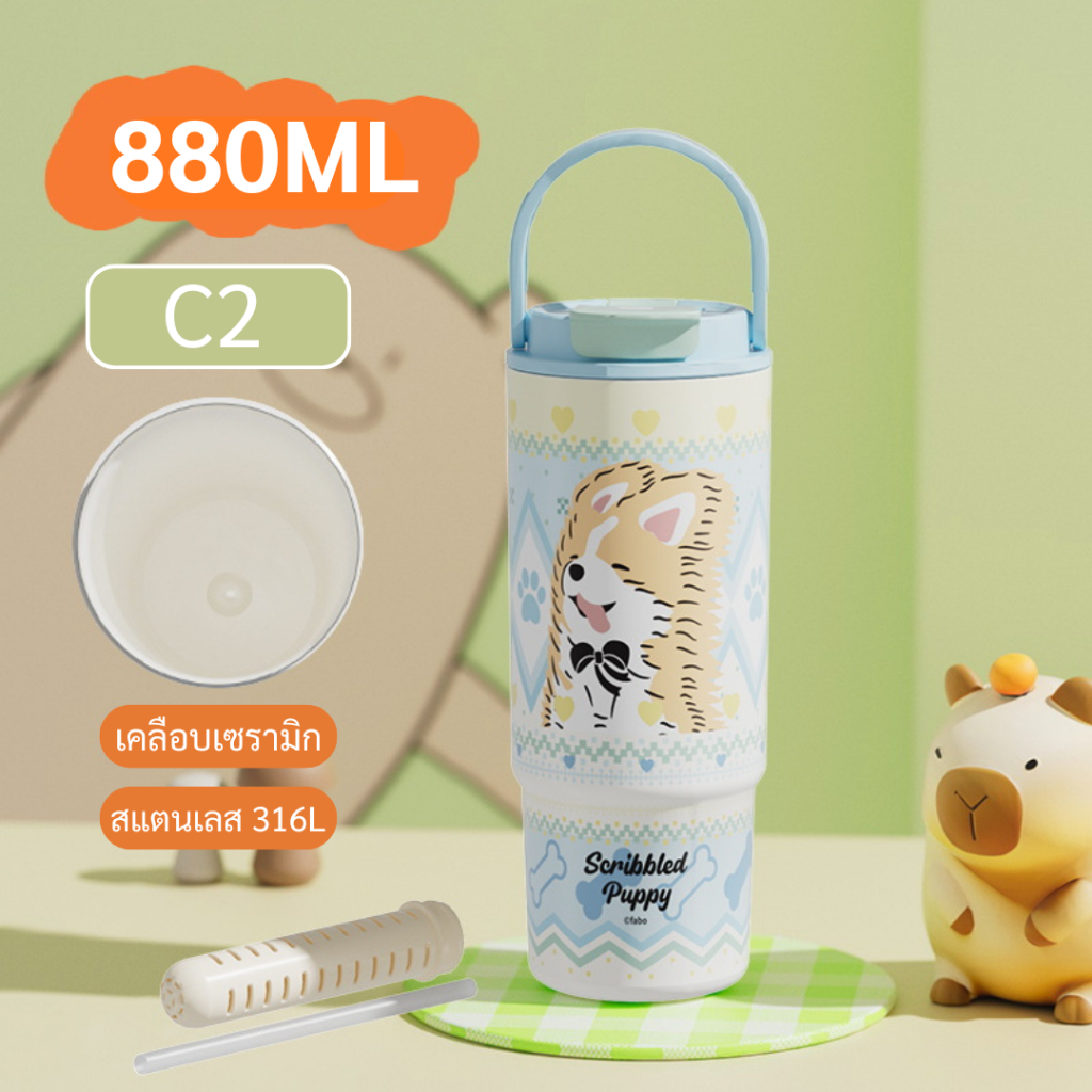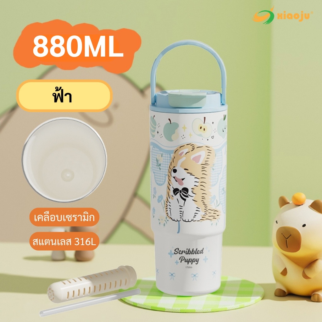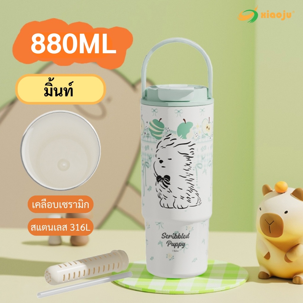 XIAOJU Stainless Steel Glass 880ML Seramic Coating 2-Headed Drinking Handle With SUS316L Tea Filter Durable Non-Corrosive Long-Lasting Temperature Control