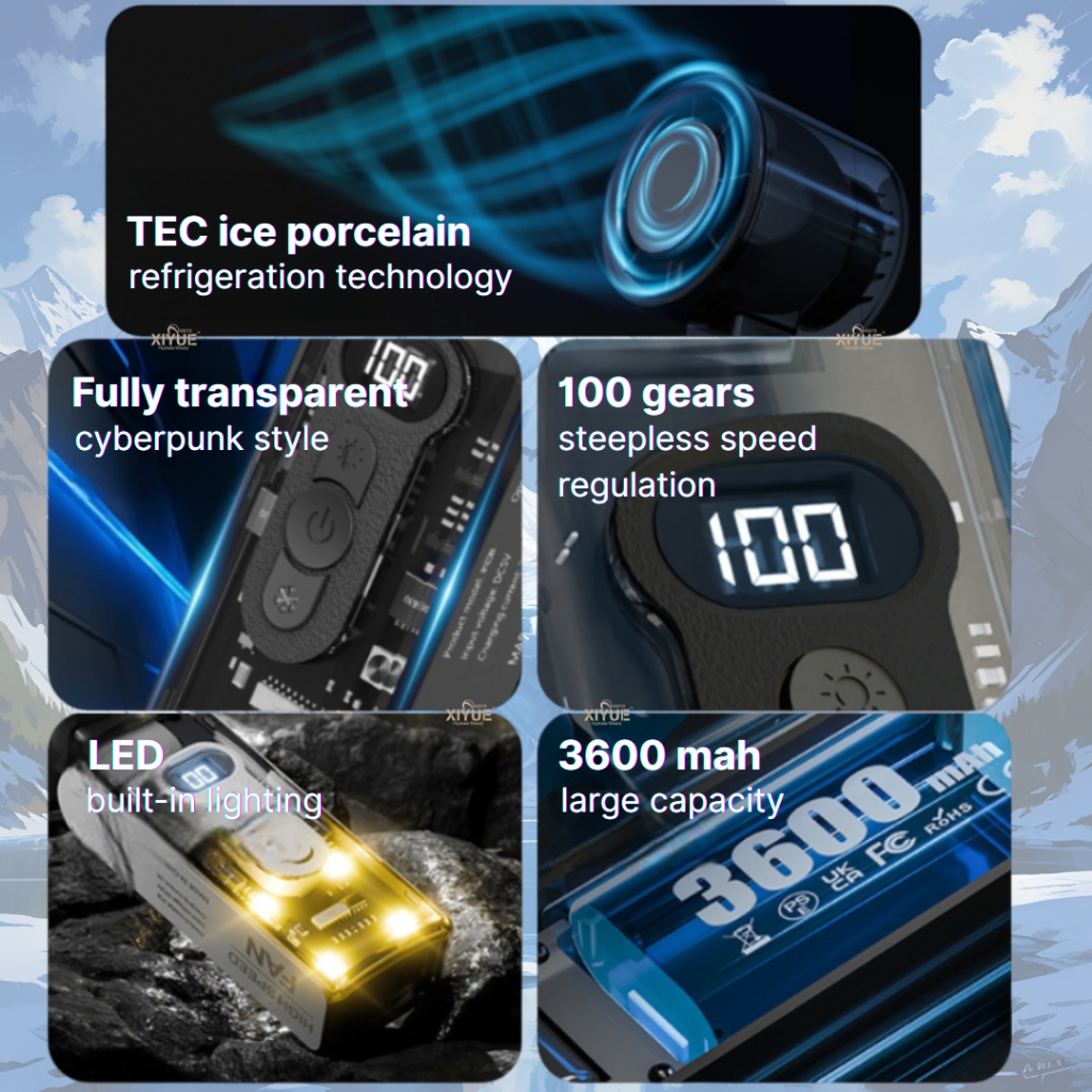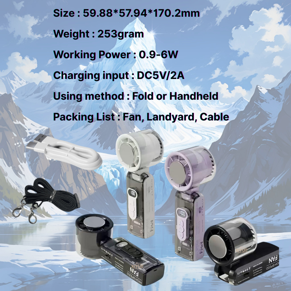 Serenity FC-8 Handheld fan desk fan cold compress cooling windy capacity black white purple type c land yard