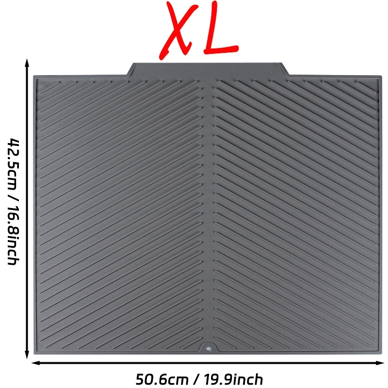 XL Silicone Dish Draining Mat, Eco Friendly Dish Drying Mat Kitchen Counter Anti-Skid and Heat Insulation Pad, Sink Drainer Mat with Dense Drainage Grooves