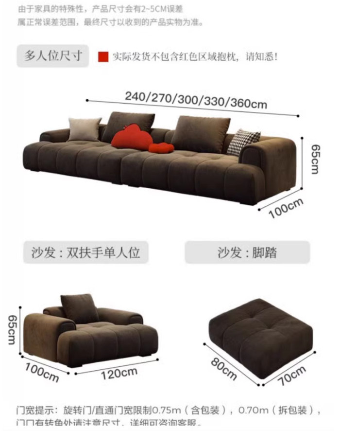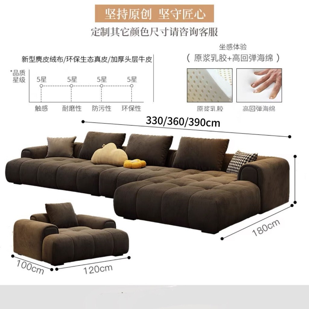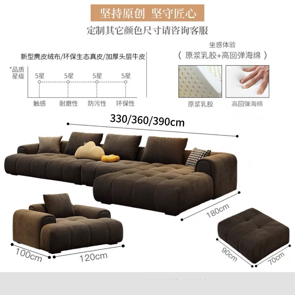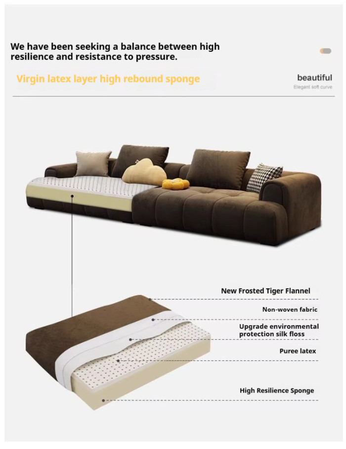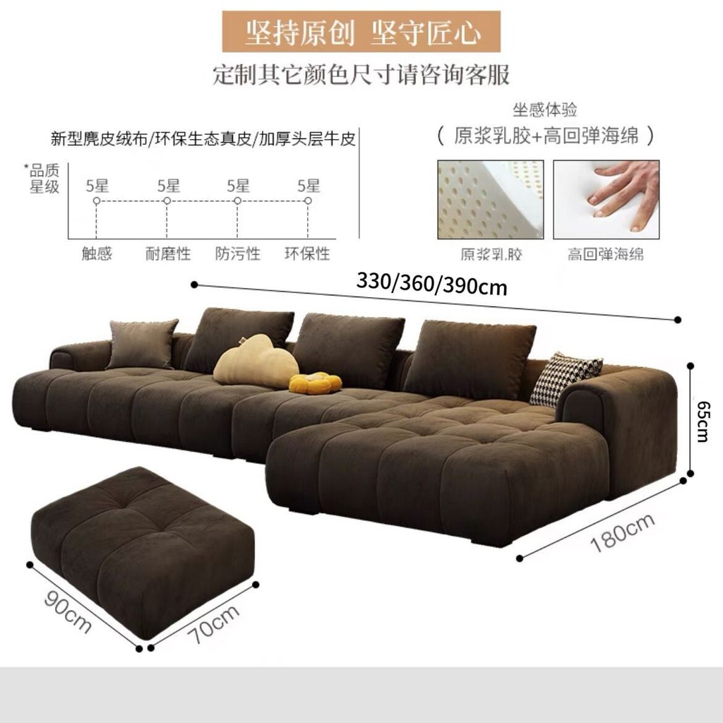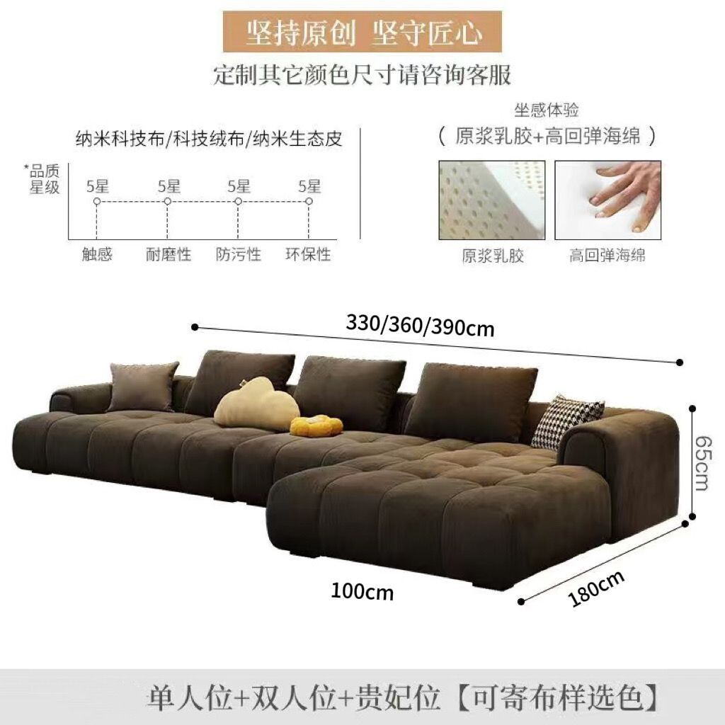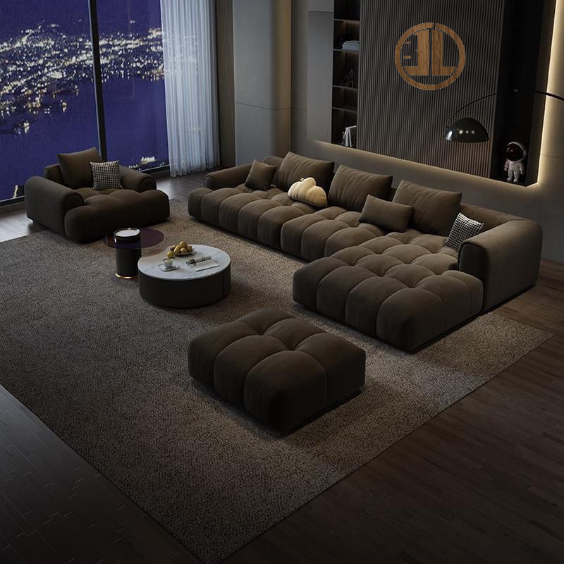 XP Sofa Nordic Frosted Technology Fabric Modern Layout Living Room Straight Row Guifei Cream Fengyun Duo Puff L-shaped Sofa
