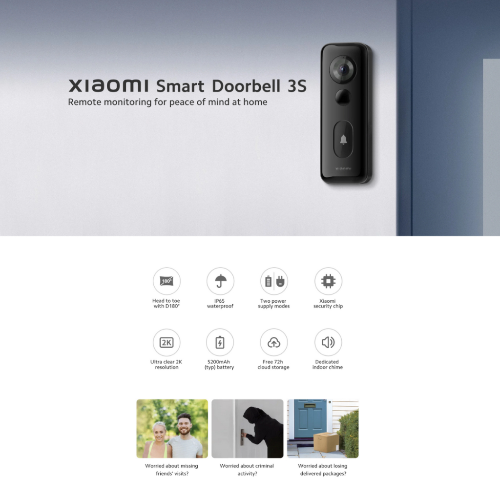 Xiaomi Mi Smart Door Bell 3S | CCTV Home Surveillance Camera | 1 Year Warranty