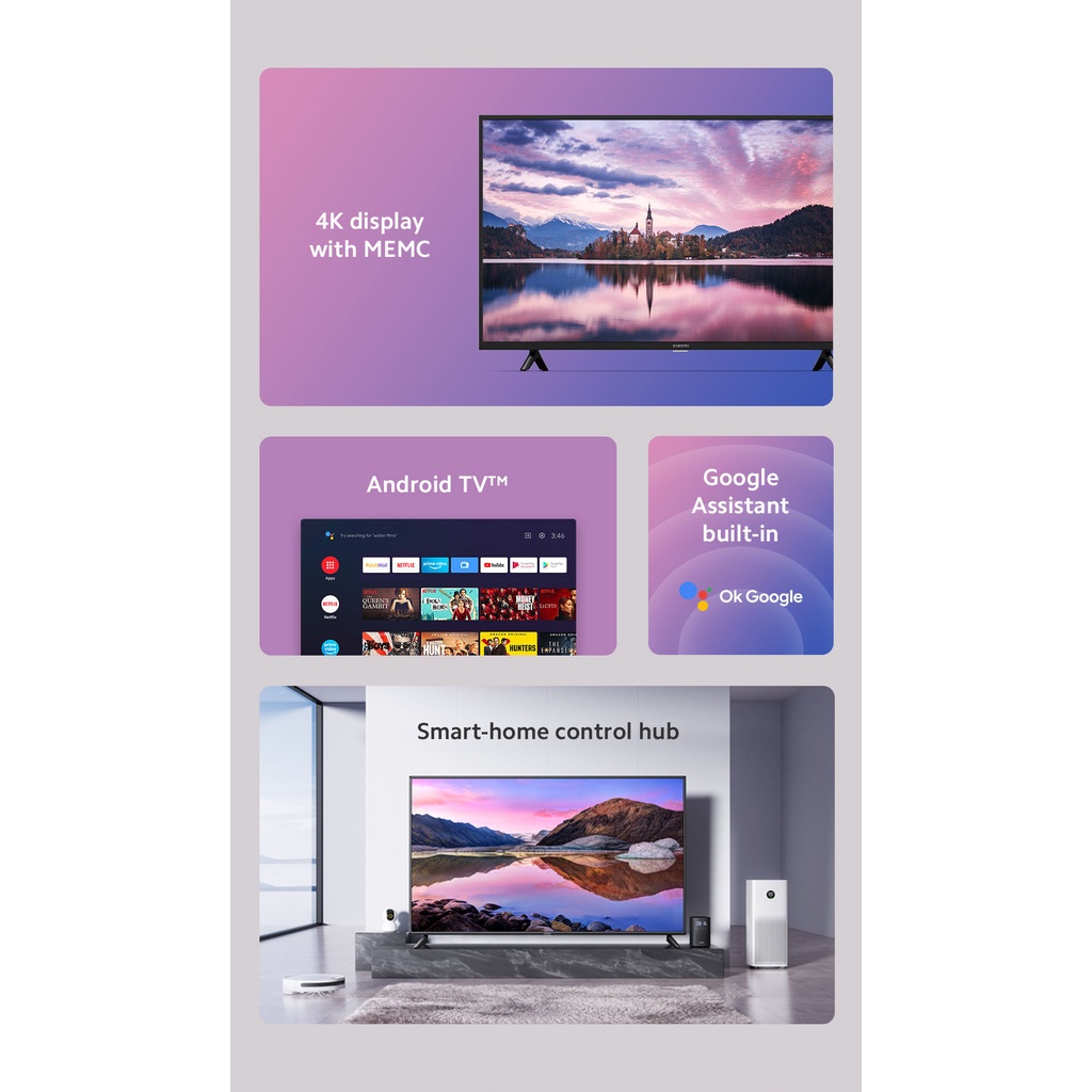 Xiaomi Mi TV P1E 65 Android TV 4K UHD DCI-P3 78% color gamut MCME Google Playstore Inbuilt Chromecast Netflix & YouTube