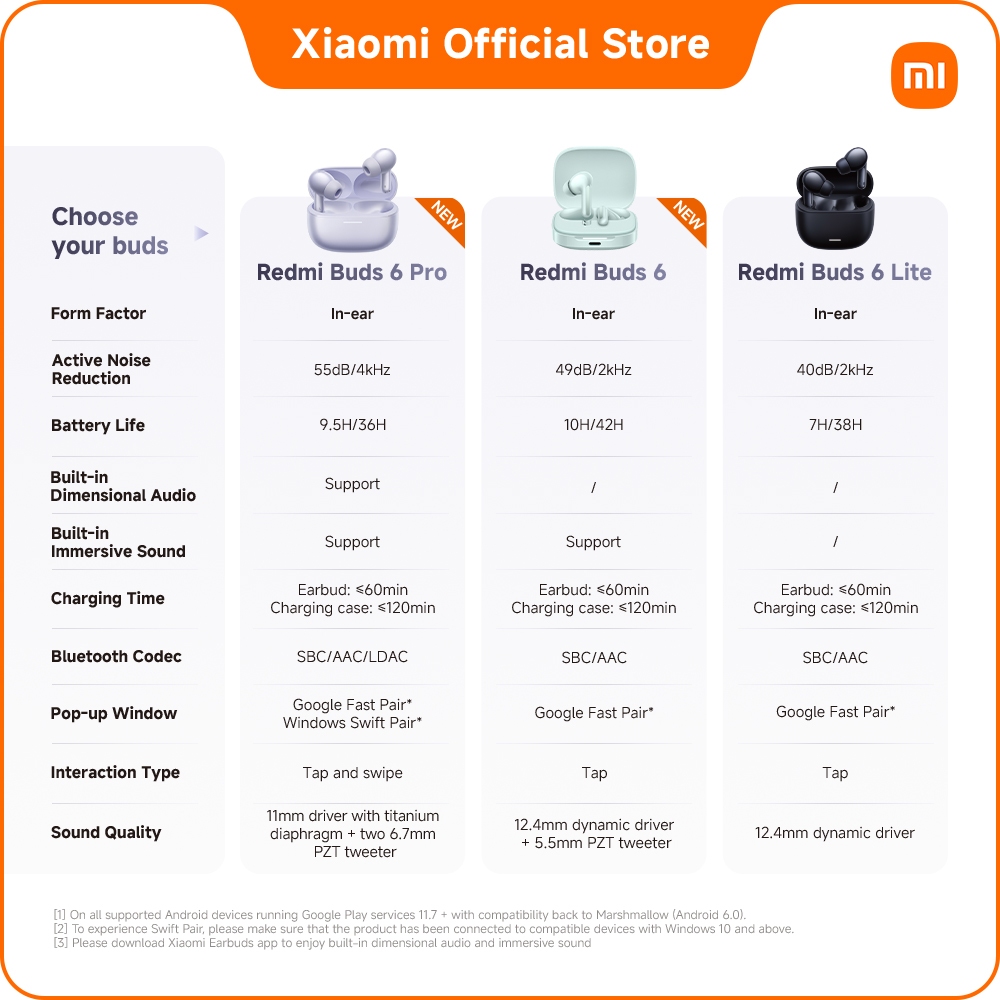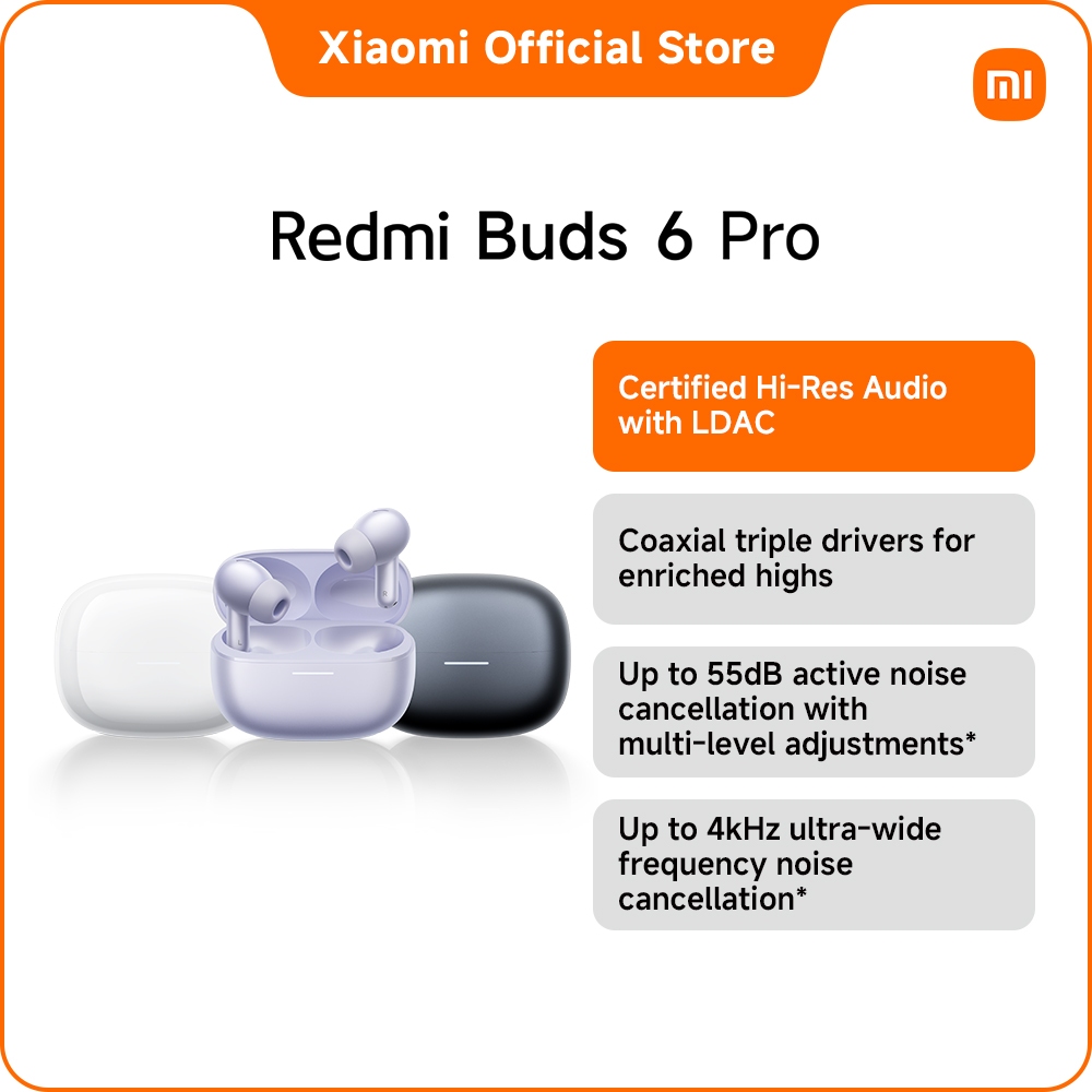 Xiaomi REDMI Buds 6 Pro | Coaxial triple drivers for enriched highs, Built-in dimensional audio, Up to 55dB active noise cancellation, Local warranty