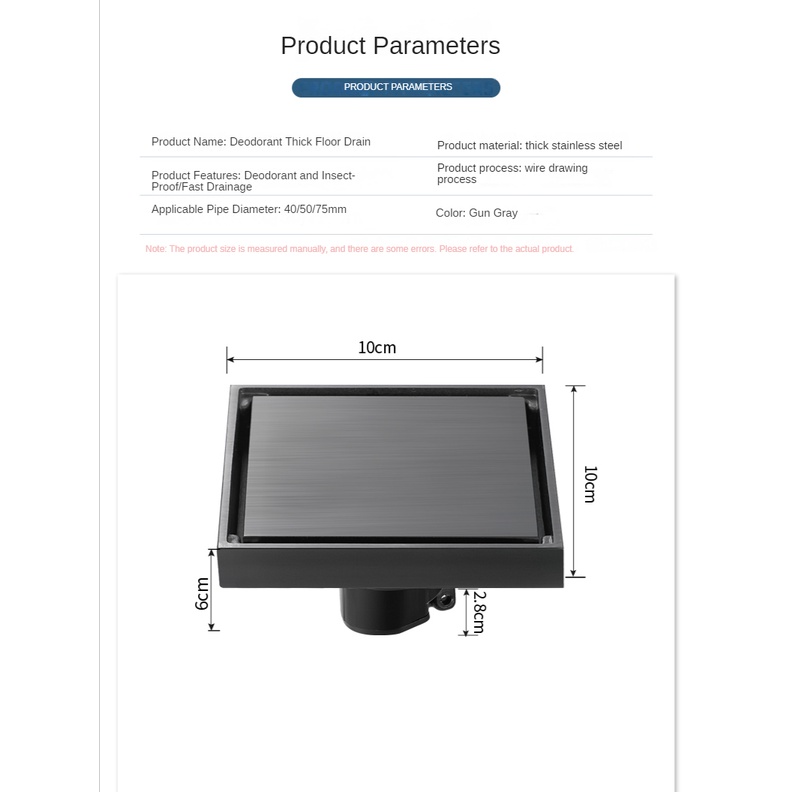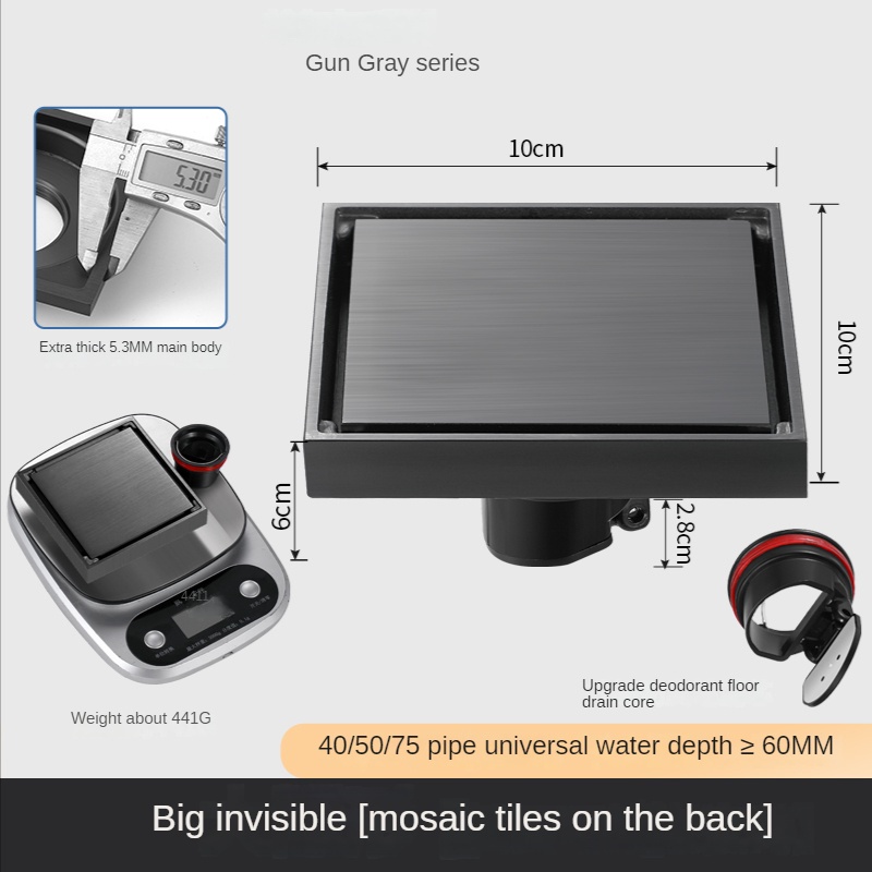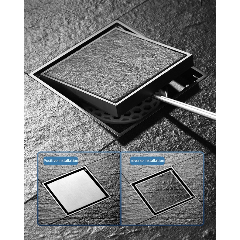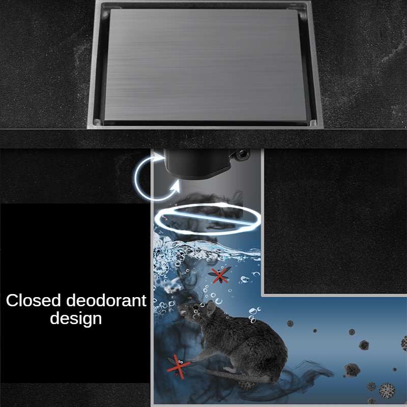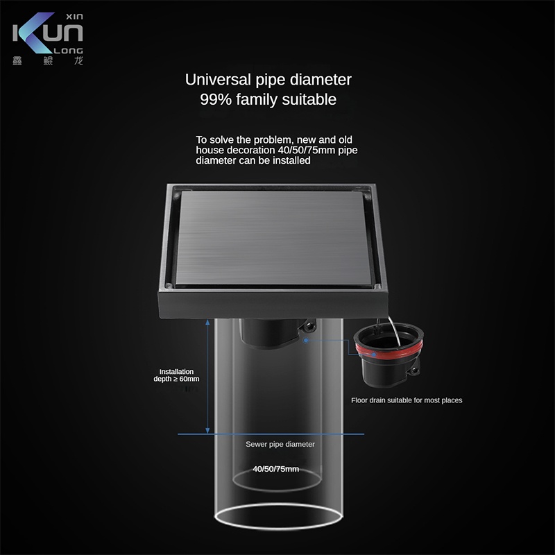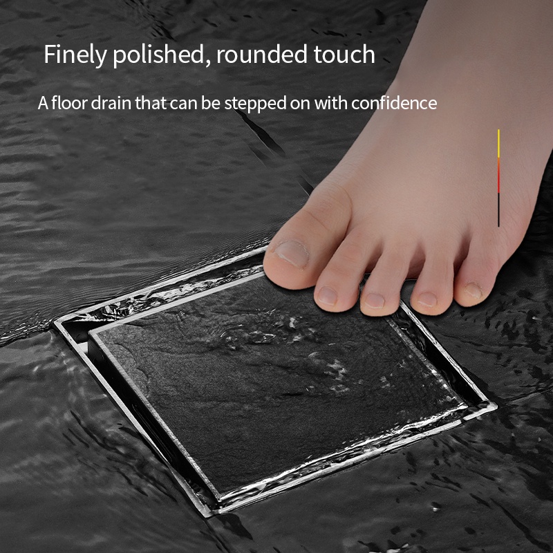 Xinkunlong Premium Grey Invisible 304 Stainless Steel Floor Drain Inlaid Tile Floor Drain Bathroom Shower Hidden Anti-Odor Floor Drain