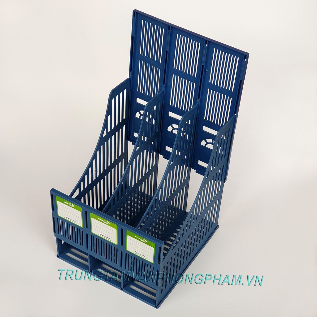 Xukiva 3-compartment document tray - 3-compartment plastic document tray - 3-compartment plastic slanted basket shelf - 3-compartment plastic assembly shelf