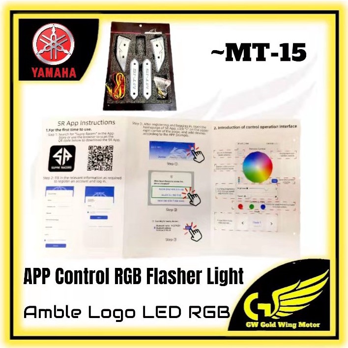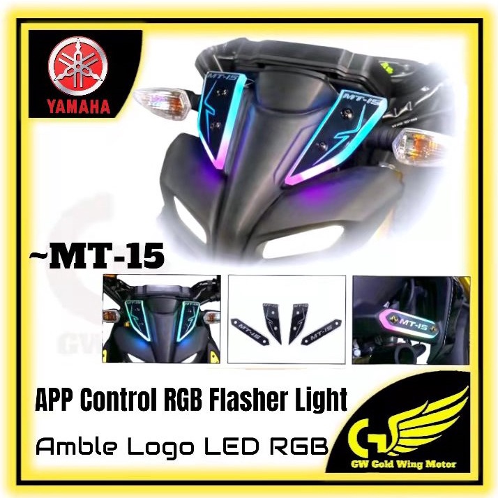 YAMAHA MT15 EMBLEM LOGO RGB LED FLASHER LAMP VISOR WINDSHIELD BRACKET BODY COVER KIT APP CONTROL MT 15
