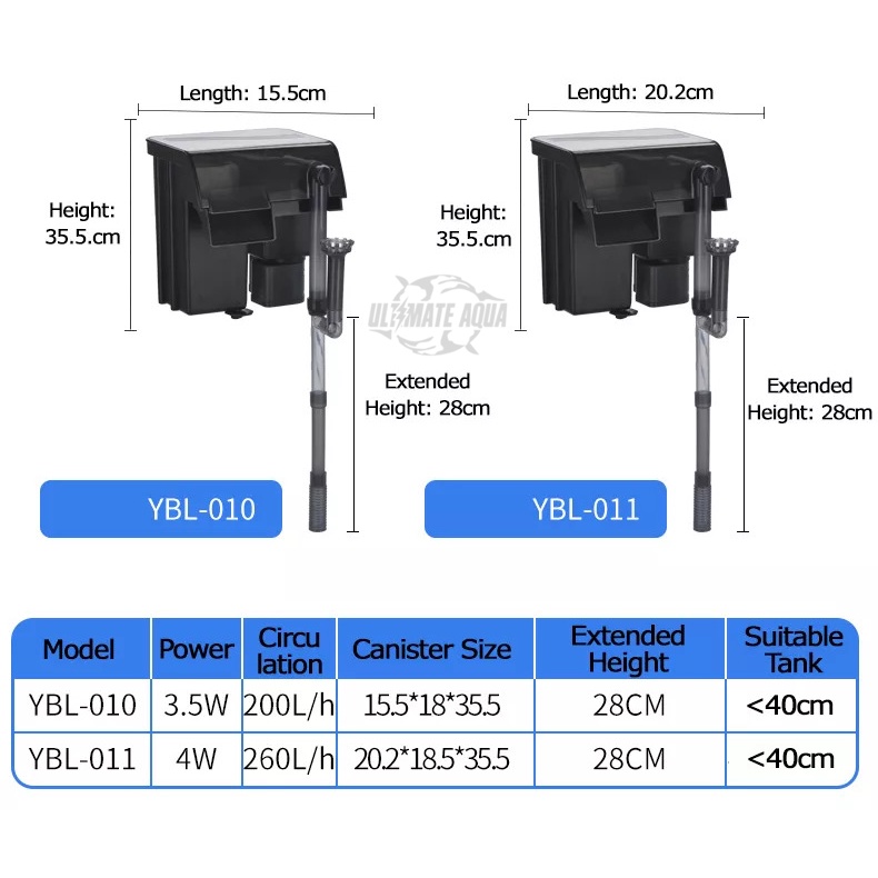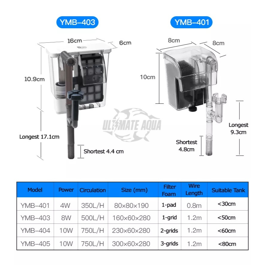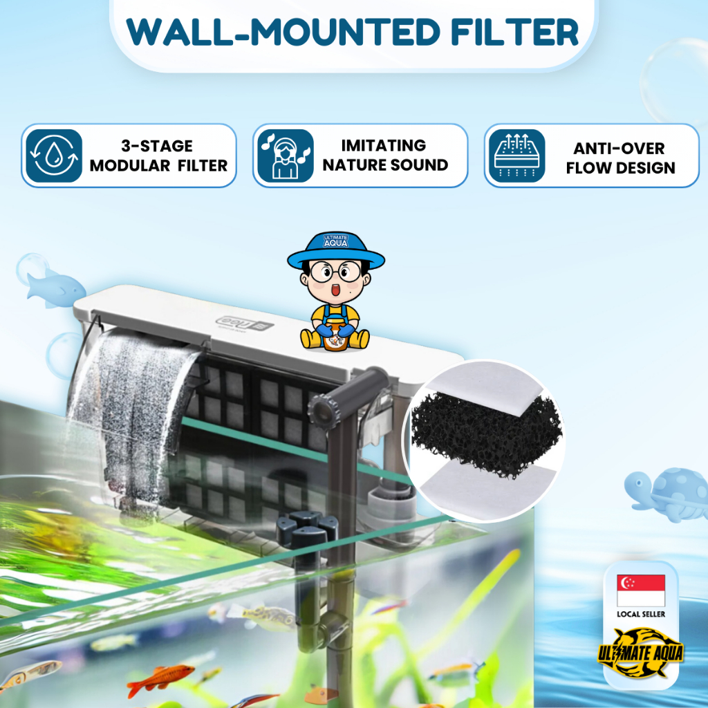 YEE Fish Tank Filter 3-in-1, Wall-Mounted Tank Filter, Waterfall Filter, Mini Aquarium Filter For Tank - Ultimate Aqua
