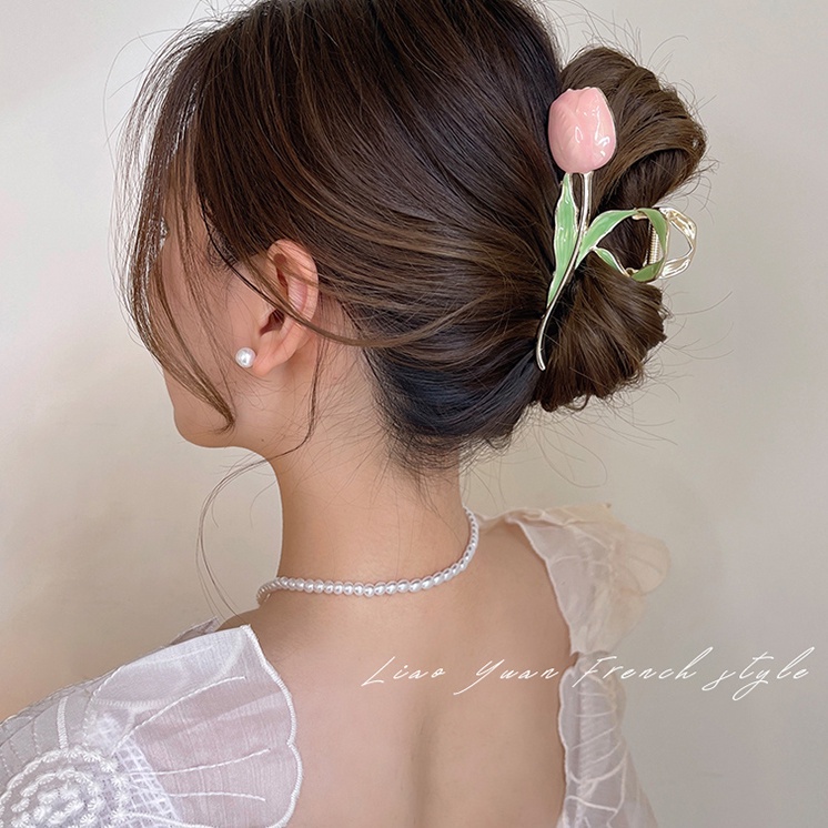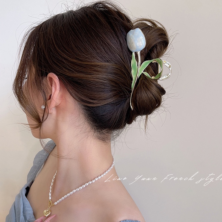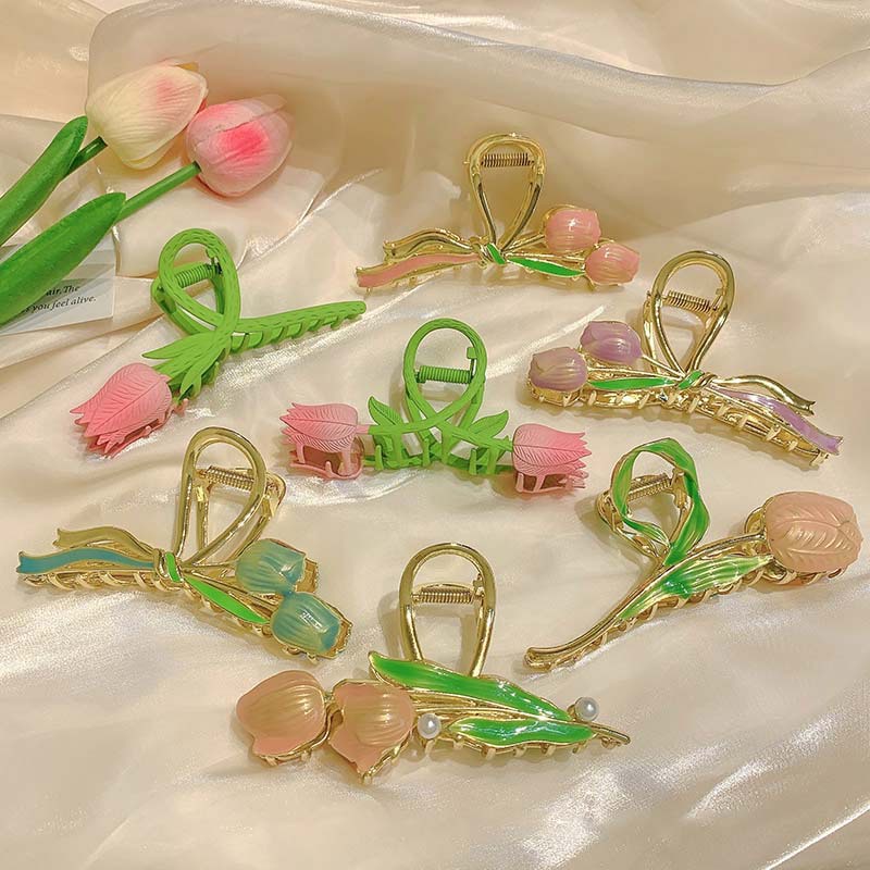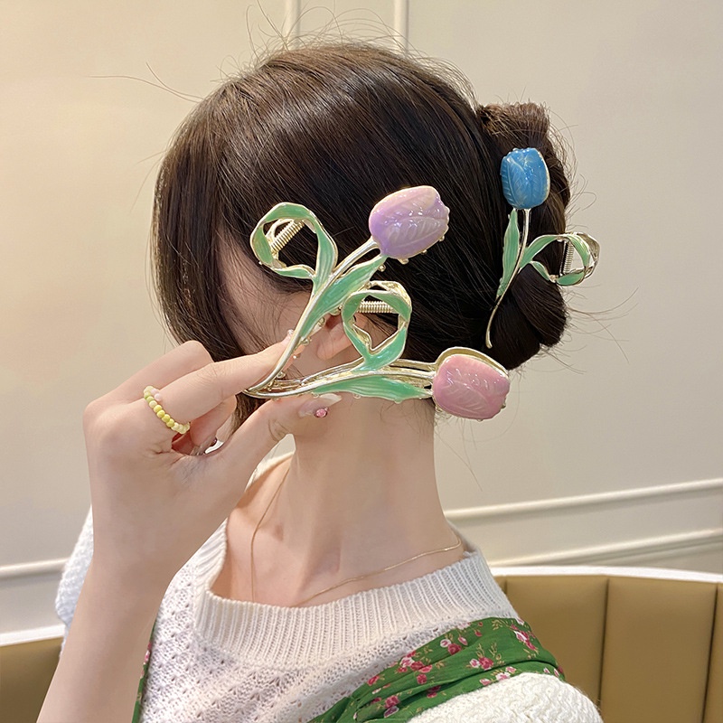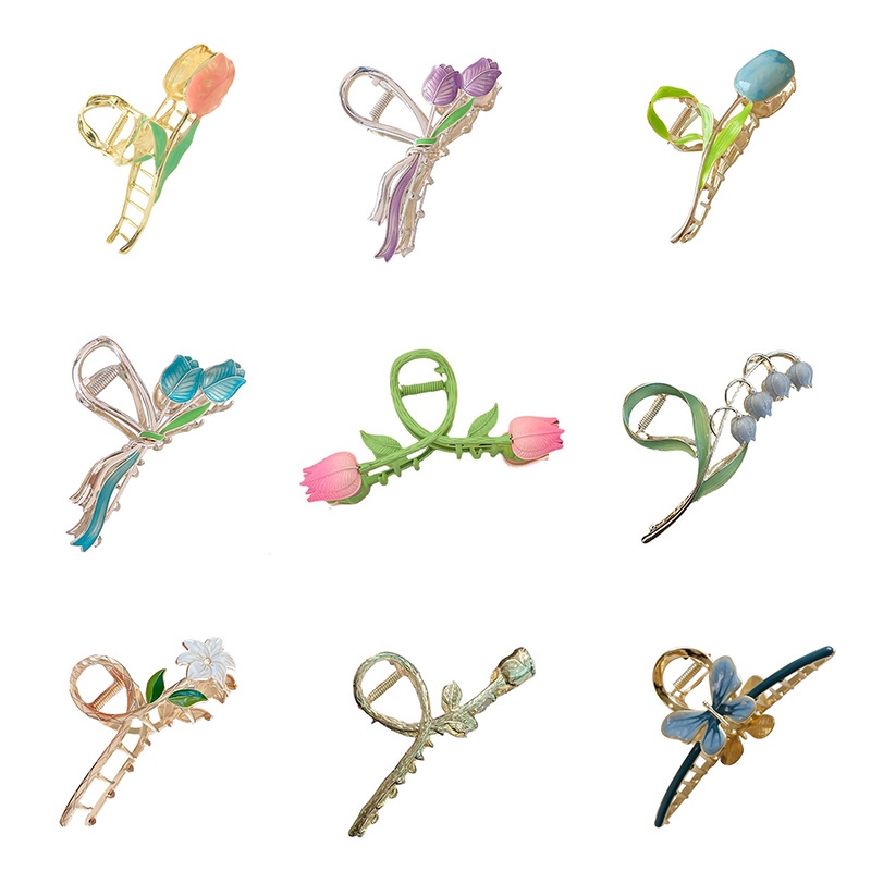 YEEZII Metallic Hair Claw Clips for Women Elegant Double Tulip Bell Orchid Rose Flower Hair Clip Accessories High Ponytail Fixed
