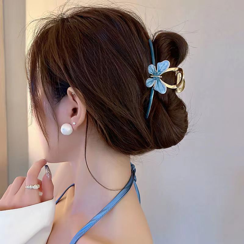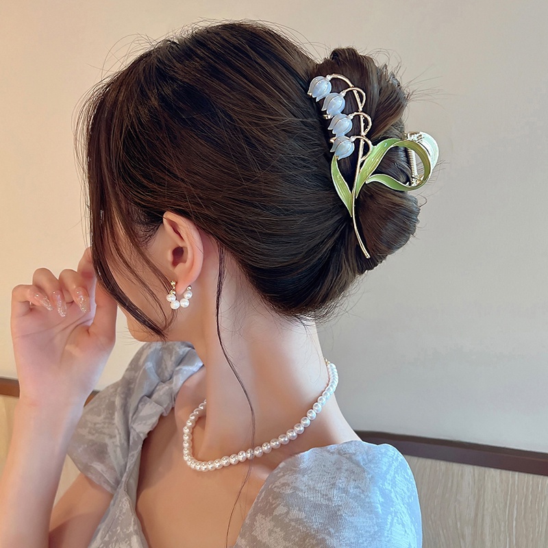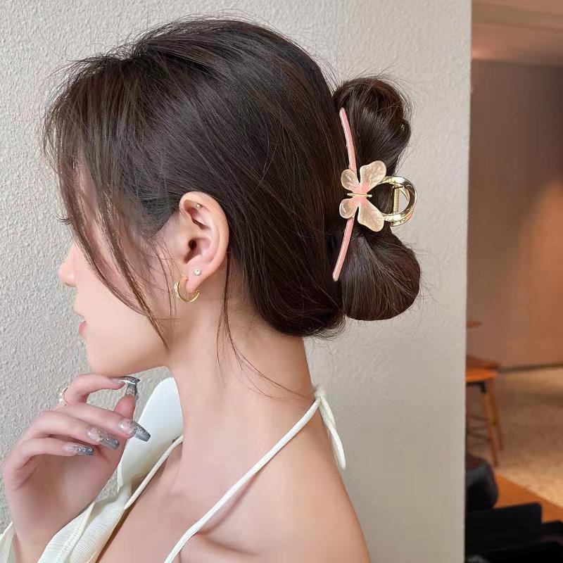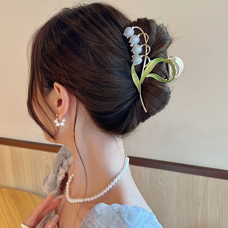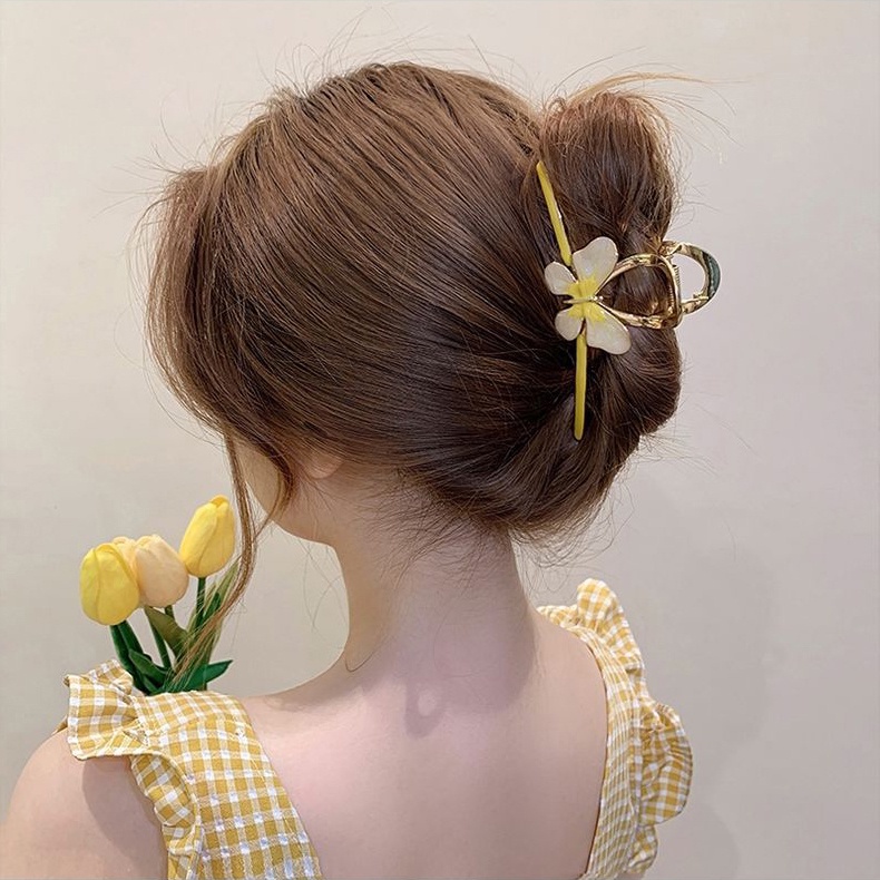 YEEZII Metallic Hair Claw Clips for Women Elegant Double Tulip Bell Orchid Rose Flower Hair Clip Accessories High Ponytail Fixed