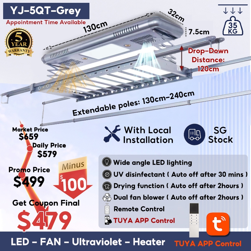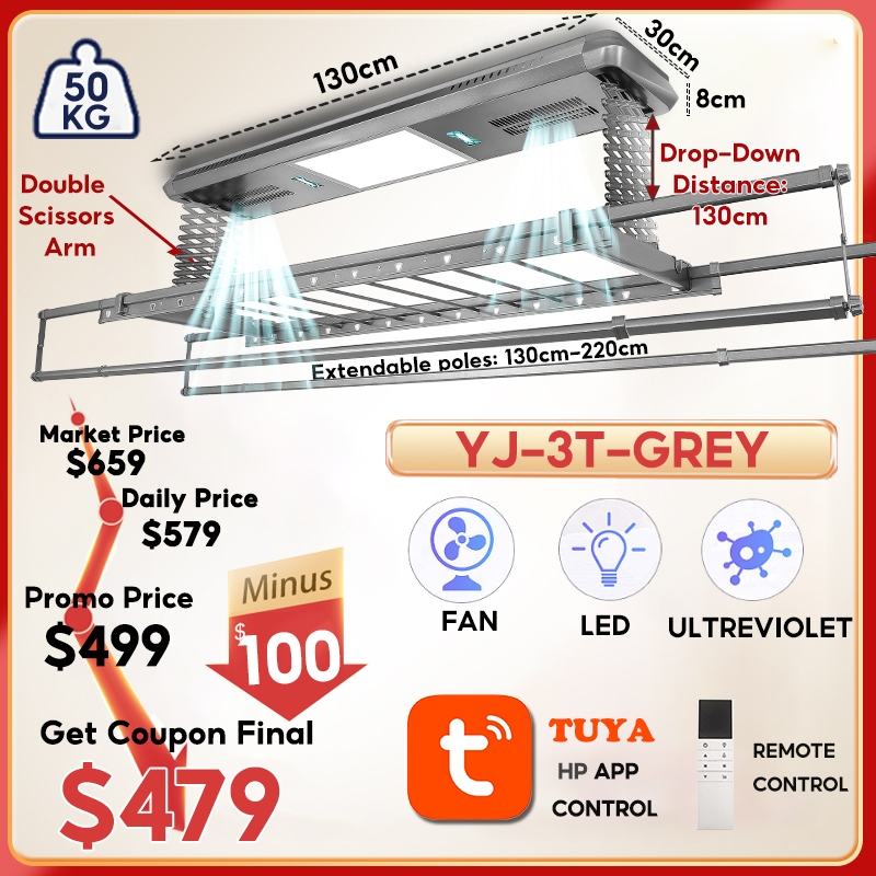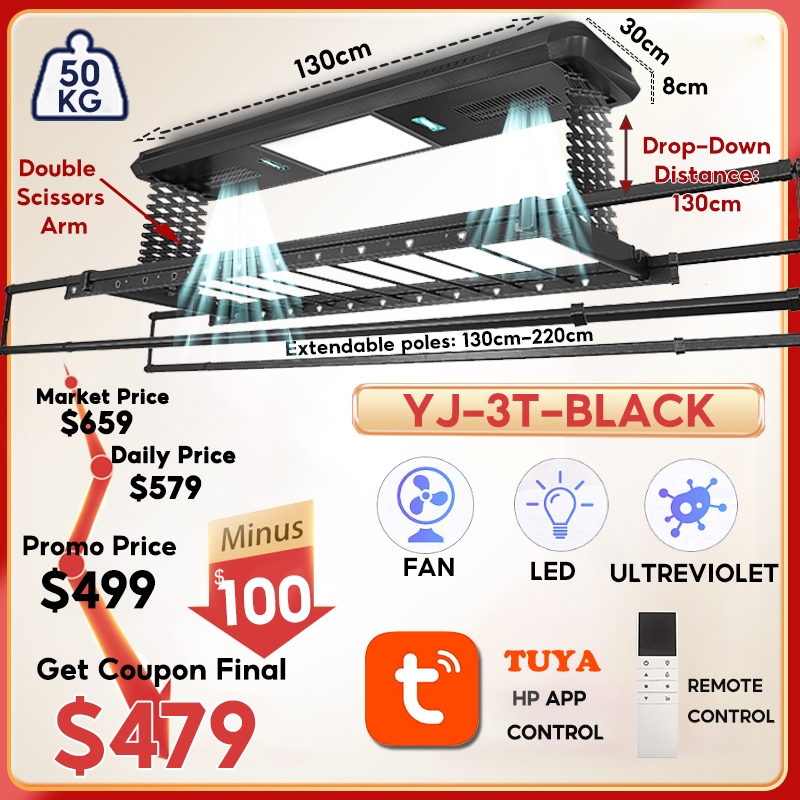 YIJIA Automated Laundry Rack Smart Laundry System Tuya App Control + Standard Installation