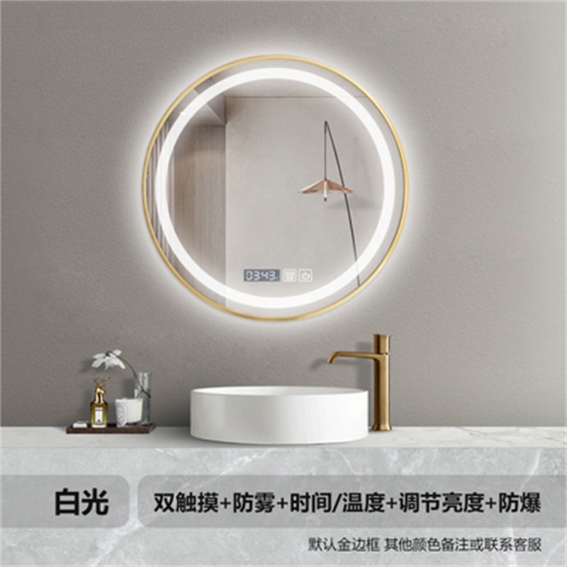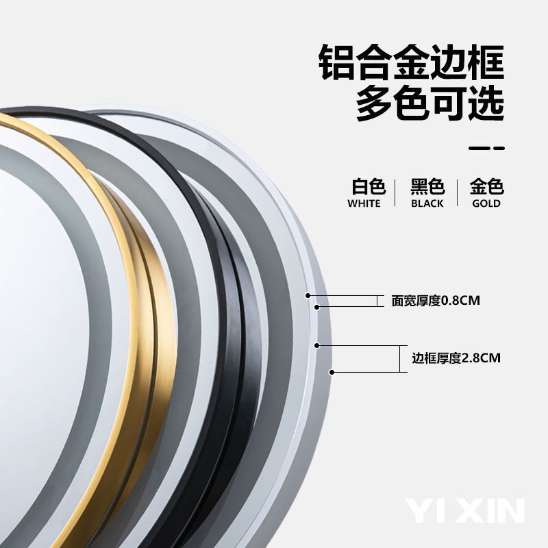 YIXIN Bathroom Mirror LED Mirror Frame Intelligent Mirror Toilet Circular Mirror With Light Aluminum Alloy Frame LED Circular Mirror With Light Bathroom Wall Mounted Anti Fog Mirror