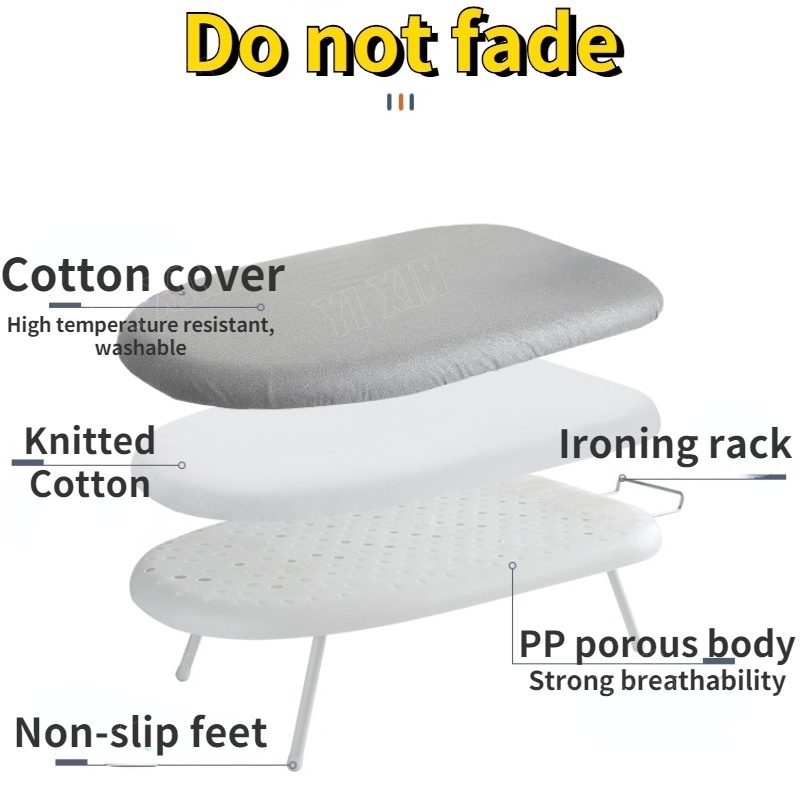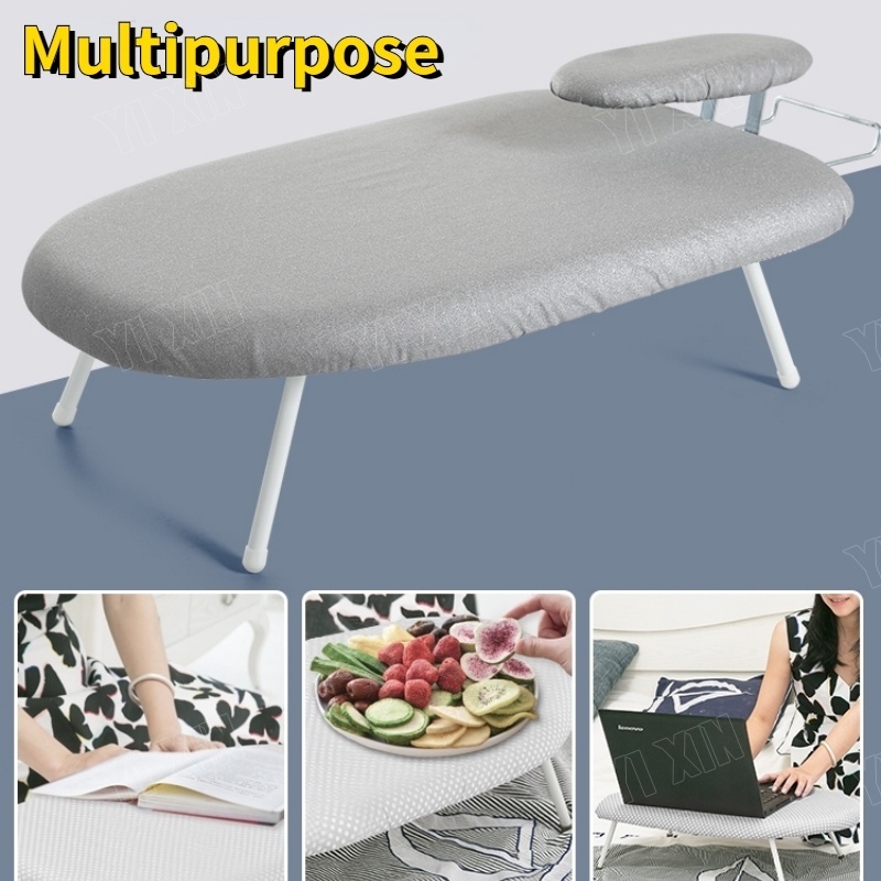 YIXIN Foldable Desktop Ironing Board Portable Mini Iron Board with Board Cover and Iron Rest Thick Folding Legs Washable Anti-Heat Backing Tabletop Furniture