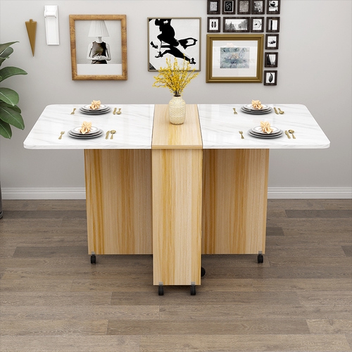 YIXIN Folding Dining Table Home Small Family Mobile with Wheel Retractable Rectangular Simple Multi-functional Dining Small Table