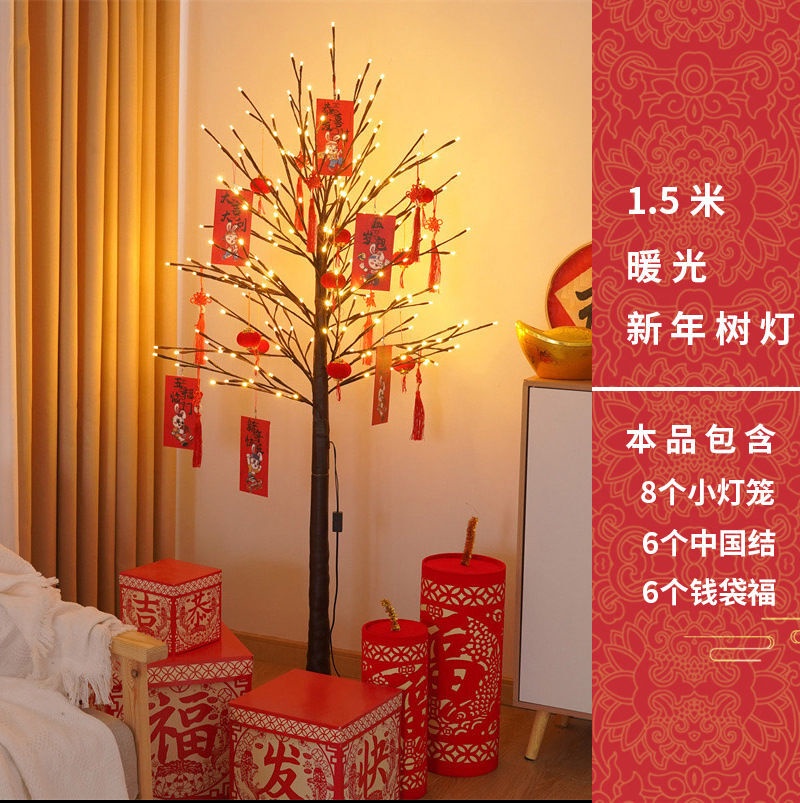 YIXIN New Year Tree Lights Decoration Chinese New Year Tree Lights LED Light-emitting Tree Lights Fortune Tree Lights Hotel Shopping Mall Store Opening Commercial Household Decoration2024