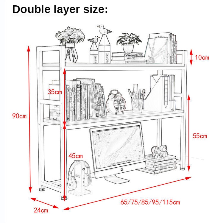 YOULITE Desktop Shelf Book Shelf Tabletop Rack Small Bookshelf Organiser Storage Rack Table Shelf Simple Dormitory Computer Desk Students With Iron Economy Multi