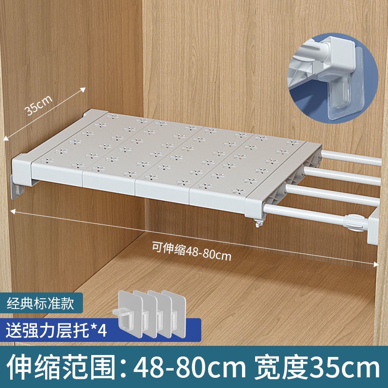 YOULITE Extendable Wardrobe Shelf Organizer/Adjustable Closet Organiser Rack/Wardrobe Partition Layered Rack Cabinet Compartment Plate Wardrobe Storage Rack Compartment Retractable Rack