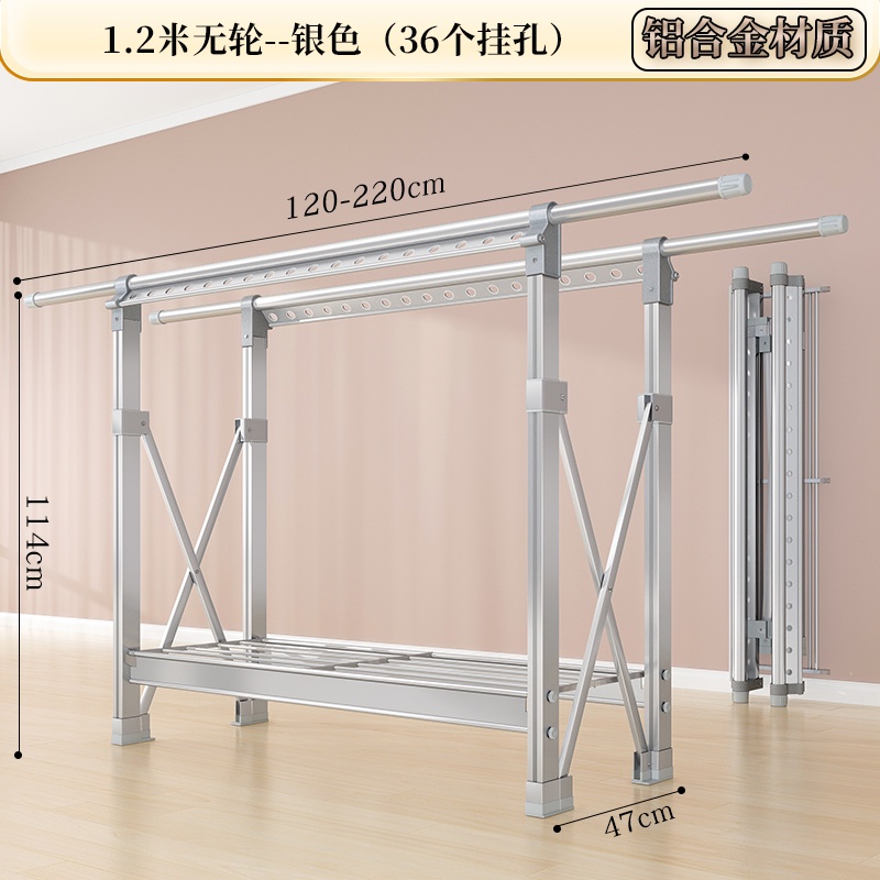 YOULITE Foldable Drying Rack Scalable Laundry Rack Movable Metal Clothes Rack Simple Clothes Rack Single / Double Pole Cloth