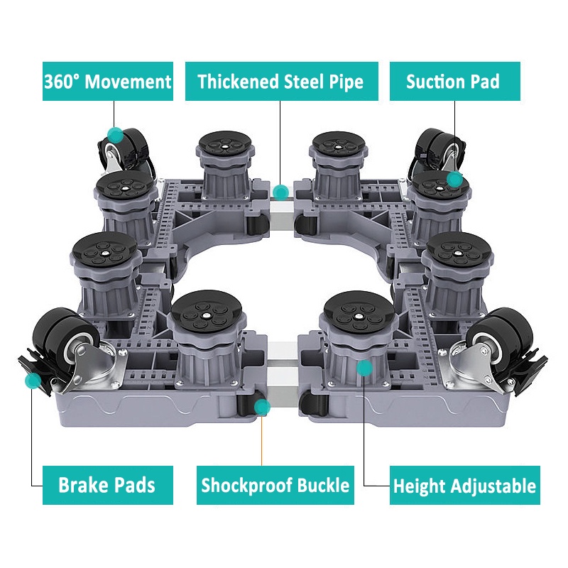 YOULITE Movable Washing Machine Base Rack Refrigerator Base Adjustable Reinforced With Lock Wheels Special Base For Refrigerator Universal Pad Roller Moving Casters Refrigerator Bracket High Leg Rack