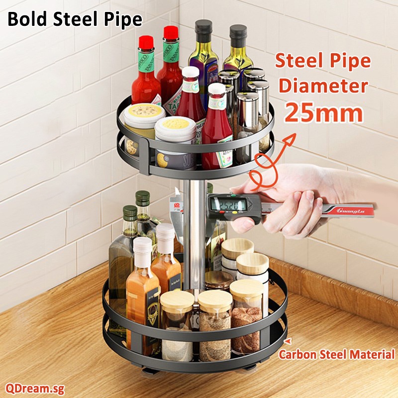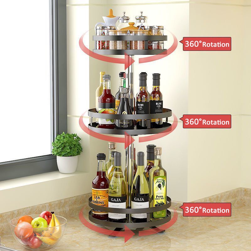 YOULITE Rotating Spice Rack Kitchen Spin Storage Shelf Multifunction Seasoning Storage Condiments Organizer Oil Sal Sauce And Vinegar Storage Rack Home Storage