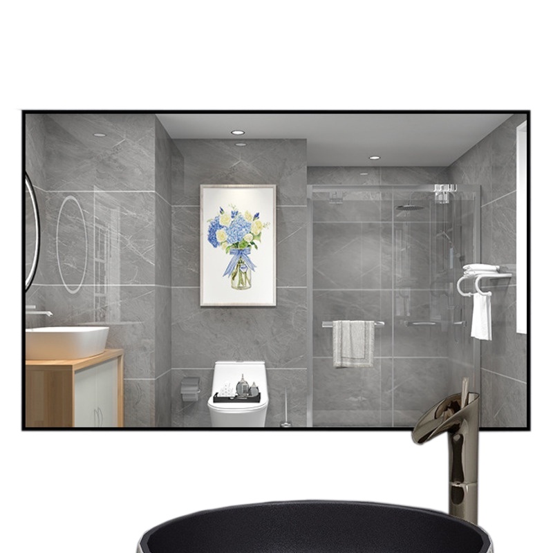 YOULITE Self Adhesive Wall Hanging Aluminum Alloy Frame Bathroom Mirror Wall Hanging Bathroom Mirror Bathroom Mirror HD Toilet Mirror Makeup Mirror Long Vanity Mirror HangingMirror