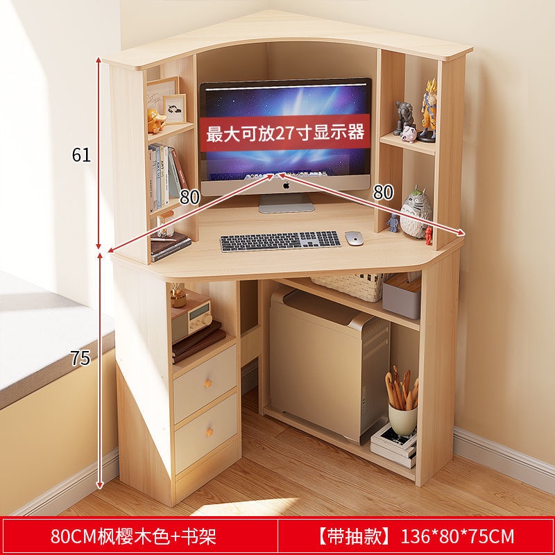 YOULITE Triangle Study Desk With Bookshelf Corner Computer Desk With Drawer Corner Writing Desk Corner Simple Home Corner Small Apartment Table