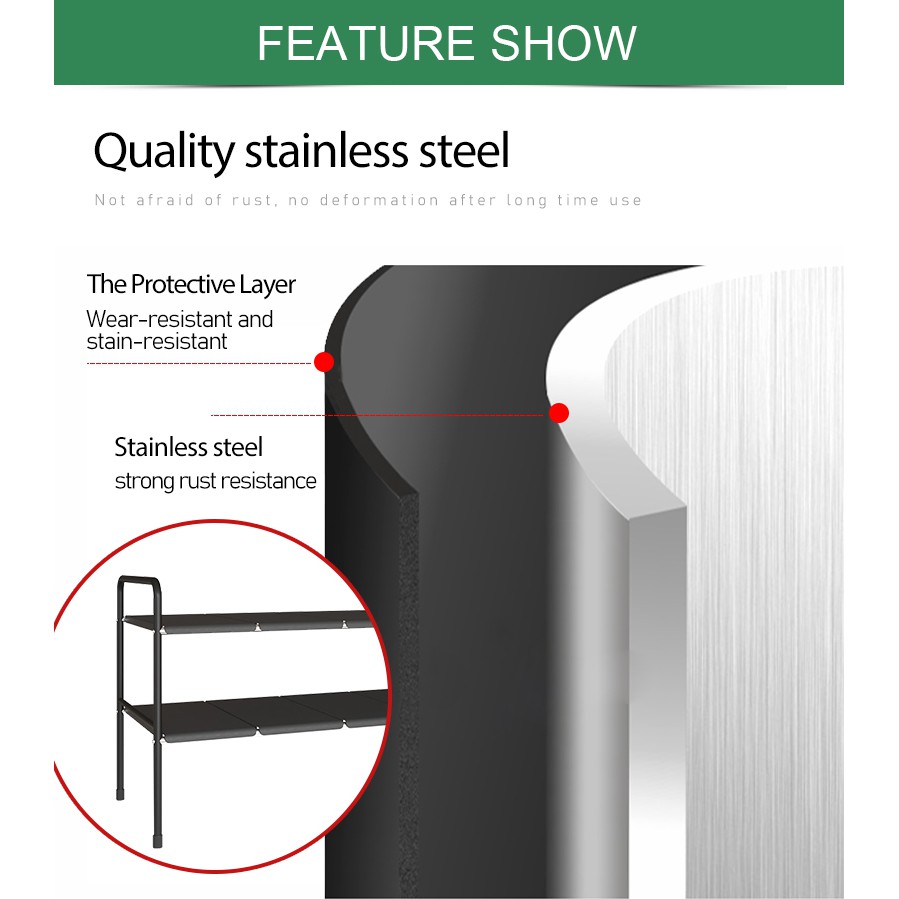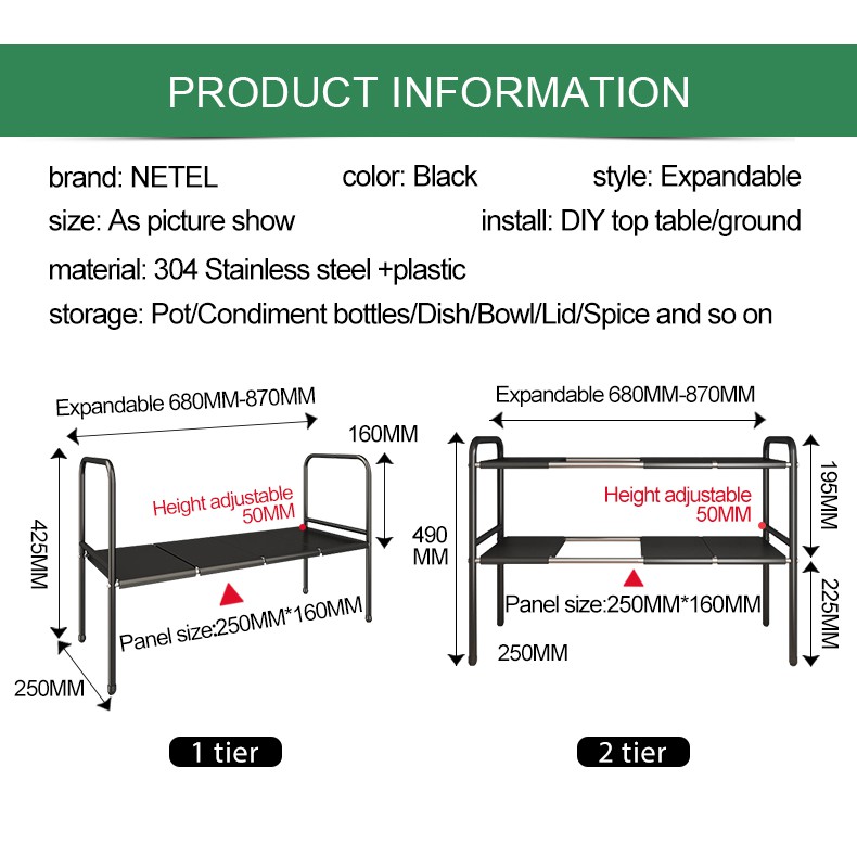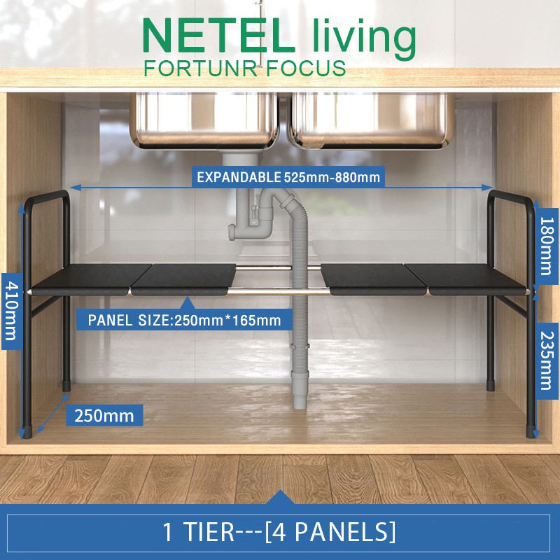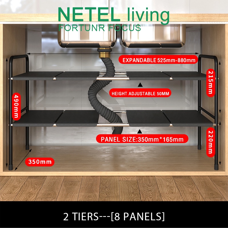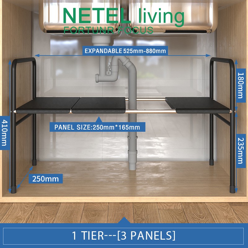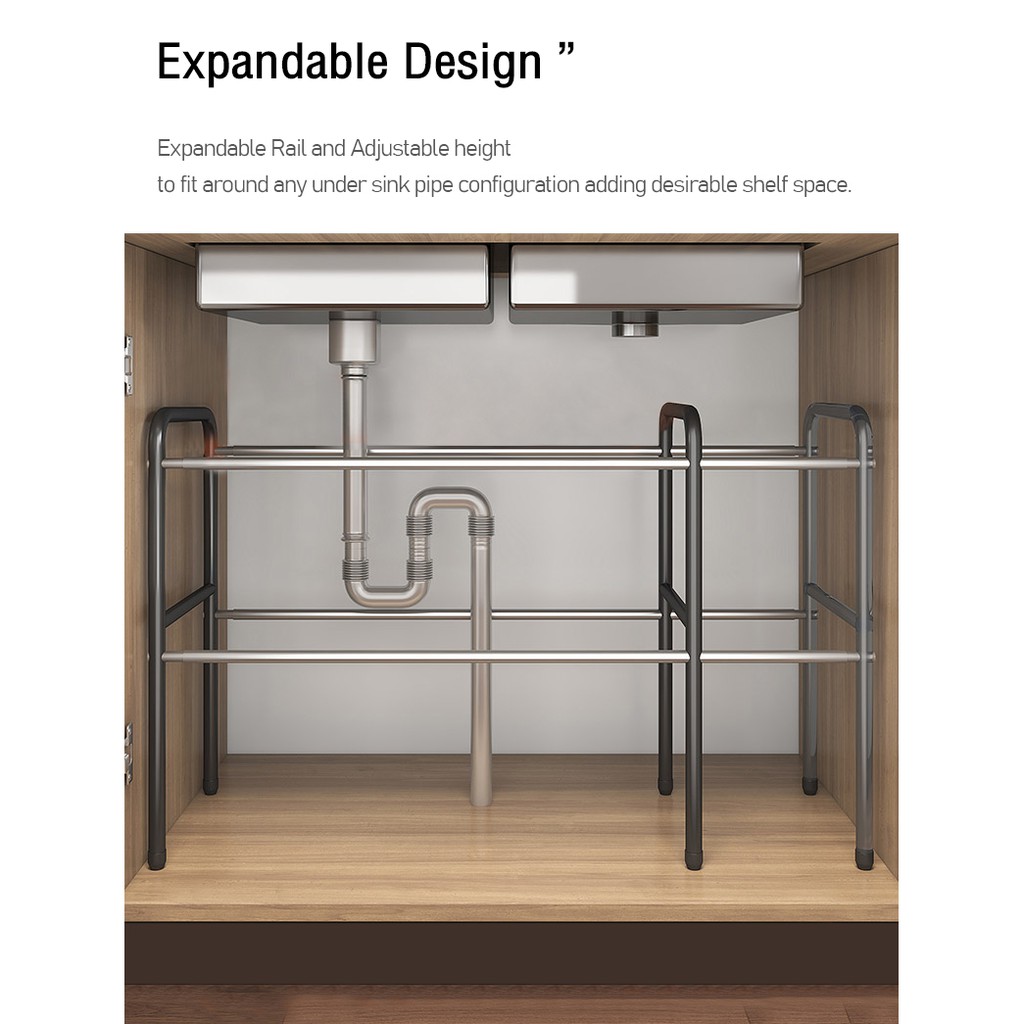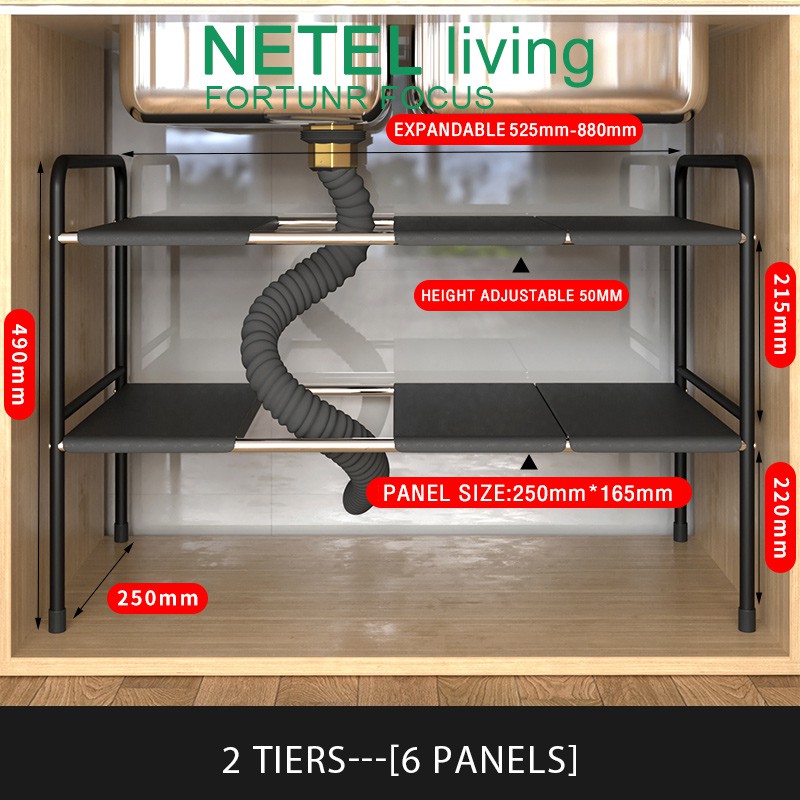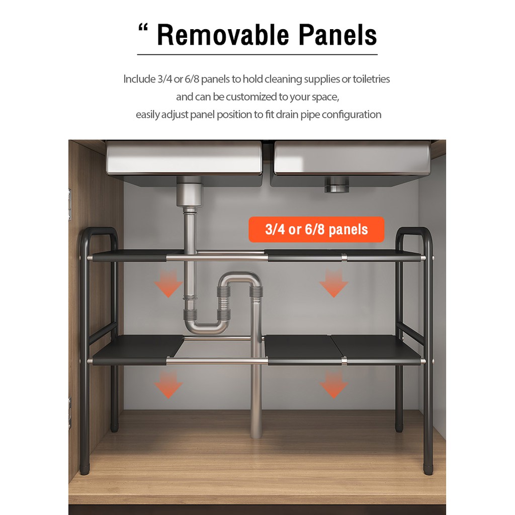 YOULITE Under Sink Kitchen Rack Expandable Cabinet Shelf Organizer Rack with Removable Panels for Kitchen Bathroom Storage Rak Serbaguna Dapur Sinki Black / kitchen organiser drawer cabinet rack / under sink rack