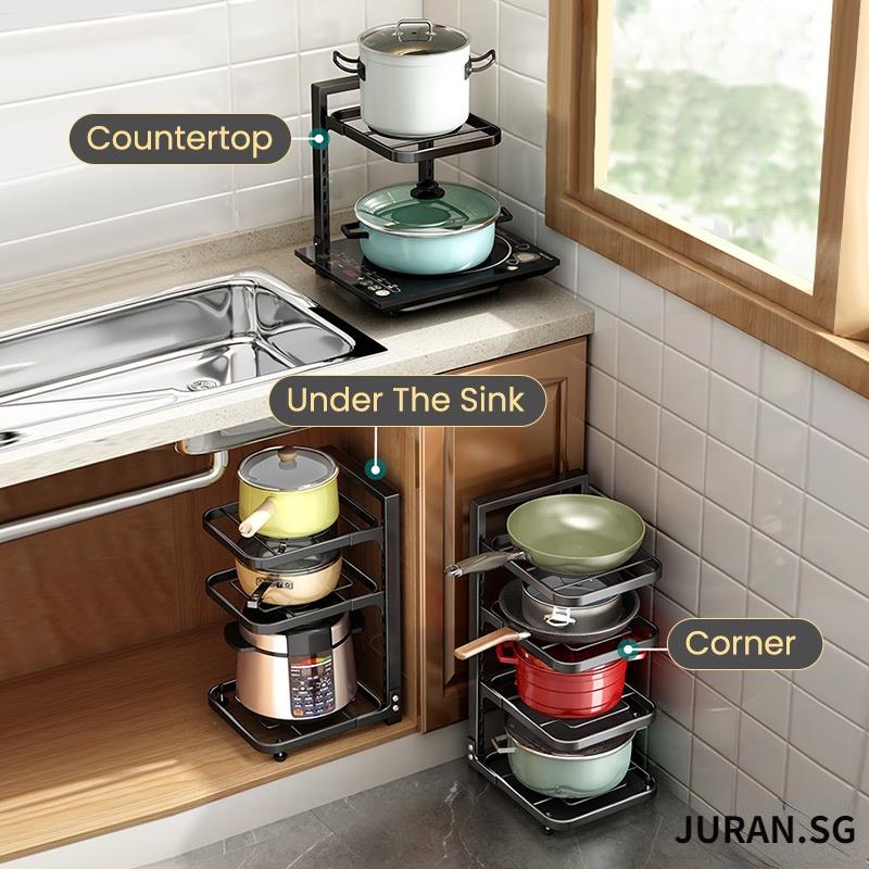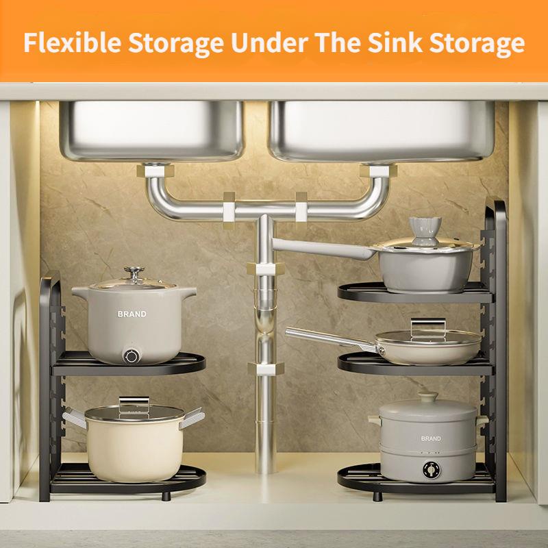 YOUNAL Adjustable Pot Rack Pot Organiser Under Sink Organiser Under Sink Rack Kitchen Organiser Rack Kitchen Sink Organiser