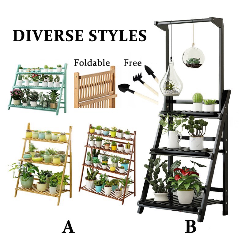 YOUNAL Flower Rack Plant Rack Bamboo Multi-Layer Plant Stand Stepped Flower Stand