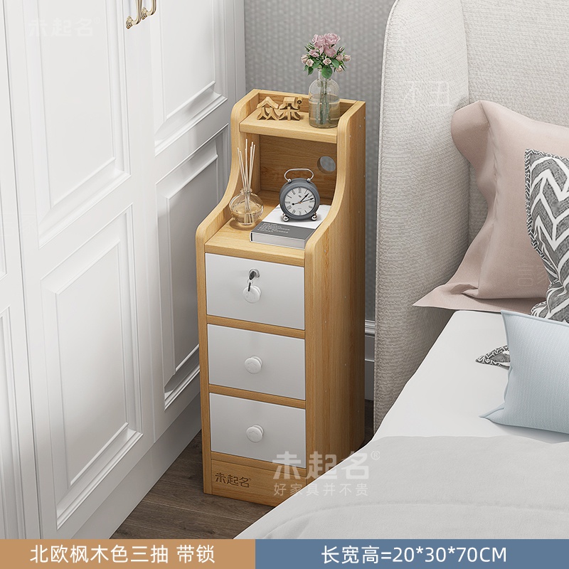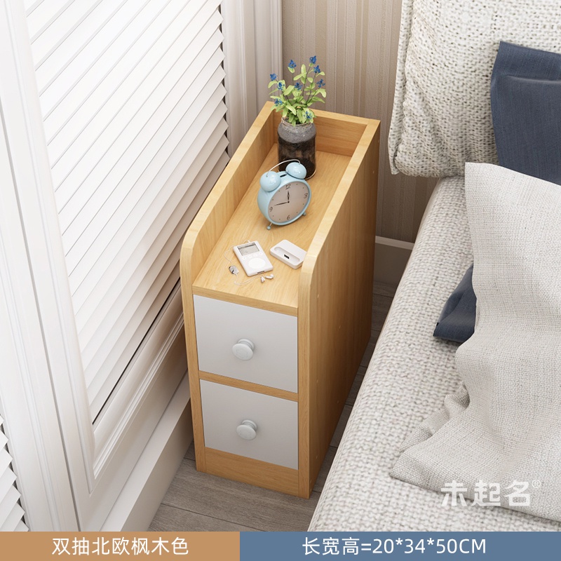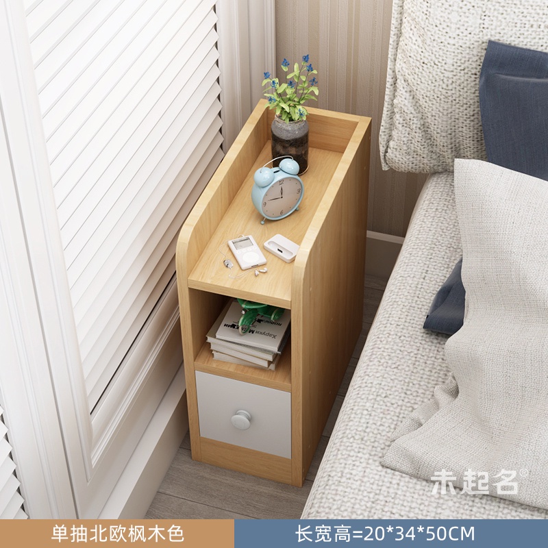 YOUNAL Ultra-narrow Bedroom Narrow Bedside Table Storage Cabinet Ultra-thin Drawer Small Side Table Small Cupboard Slim Bedside Table White/maple/gray 20/25/30/40cm Wide