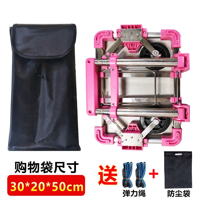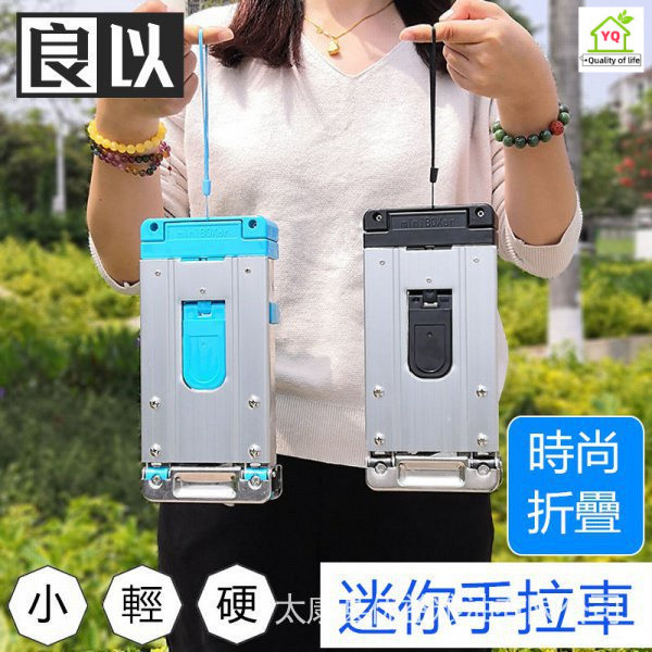 YQ Mini Grocery Shopping Cart Small Trolley Foldable Portable Free Bag Fixing Rope Magnetic Piece Household Folding Trailer Carrying Luggage pRUd