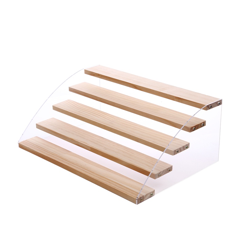 YSSH Acrylic Display Stand Model Doll Display Rack Stepped Jewelry Cosmetic Organiser Acrylic Stand Wood Base Figurine Stand Shelf