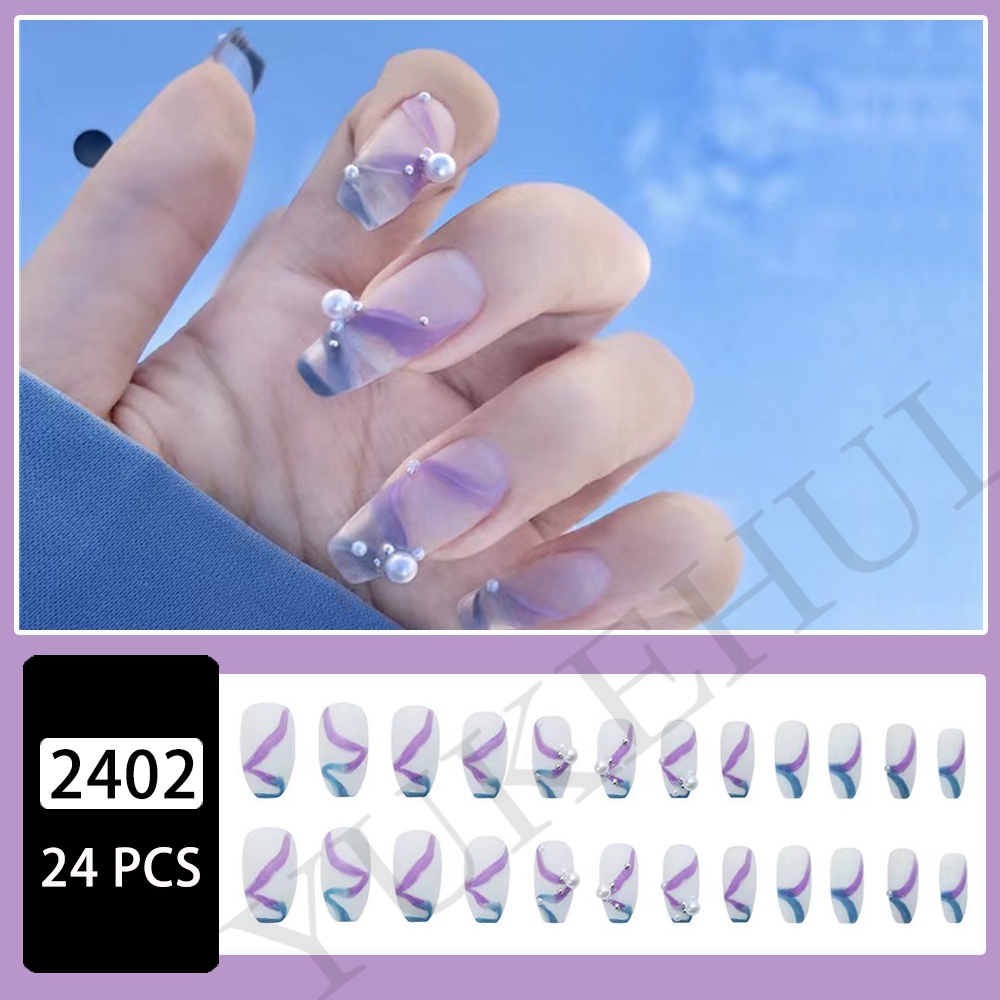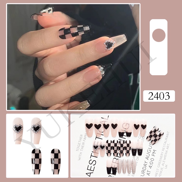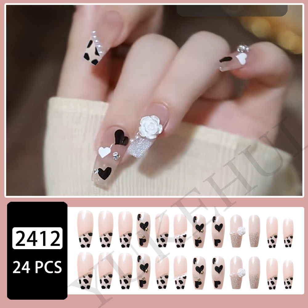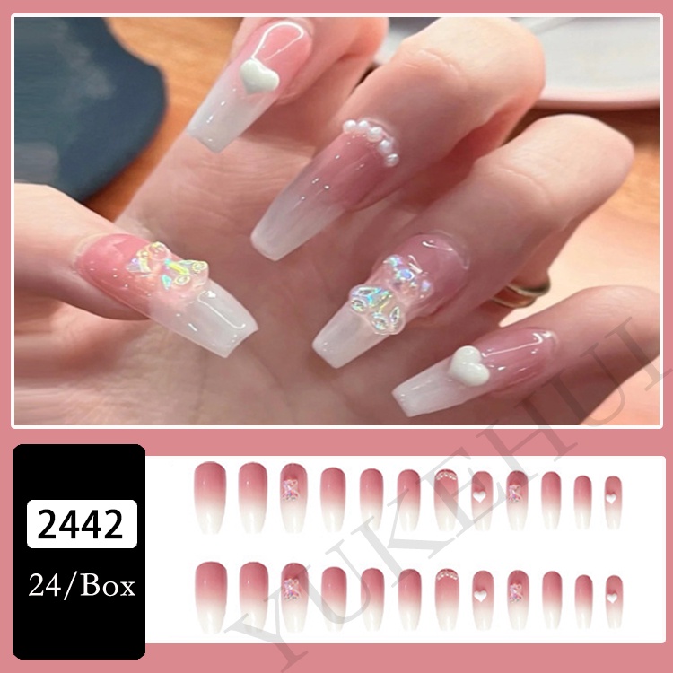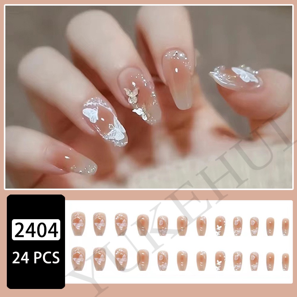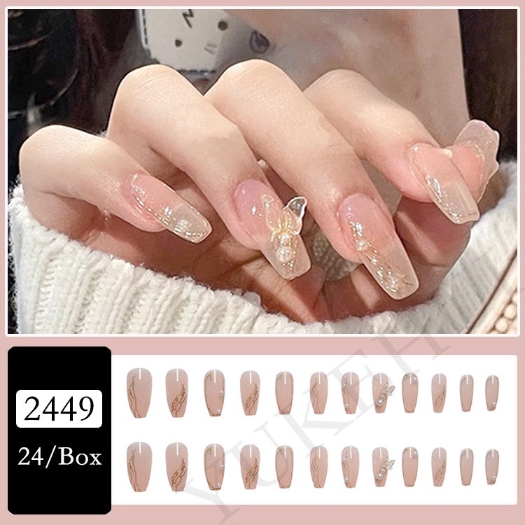 YUKEHUI 24 pcs Artificial Nails With Glue Set Fake Nails Set With Glue Matte Fake Nail GlueNail Sticker Long Nail Art Design