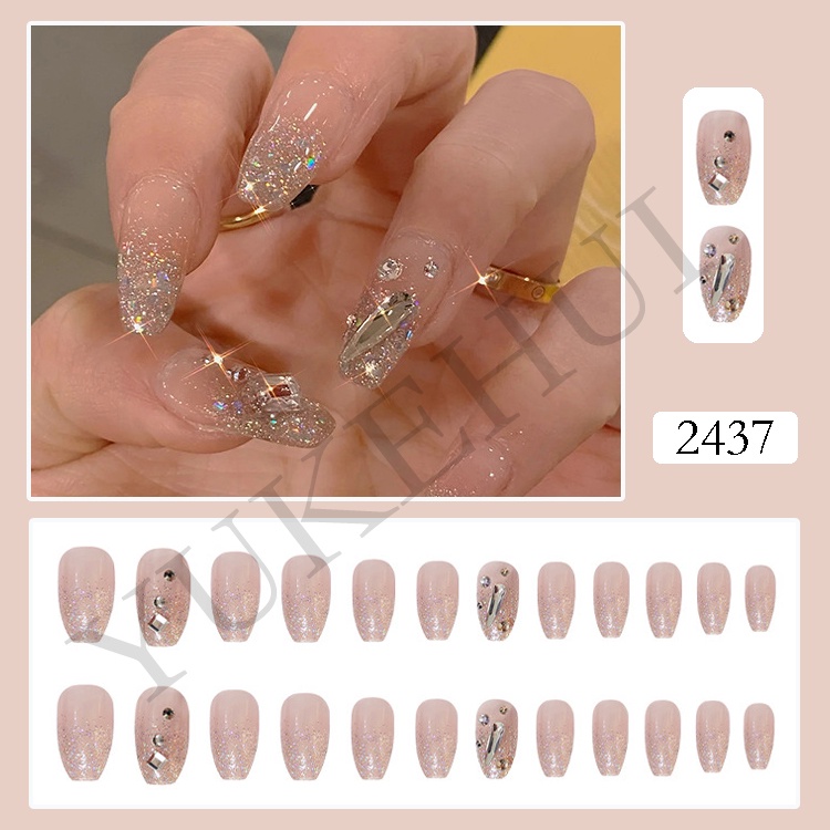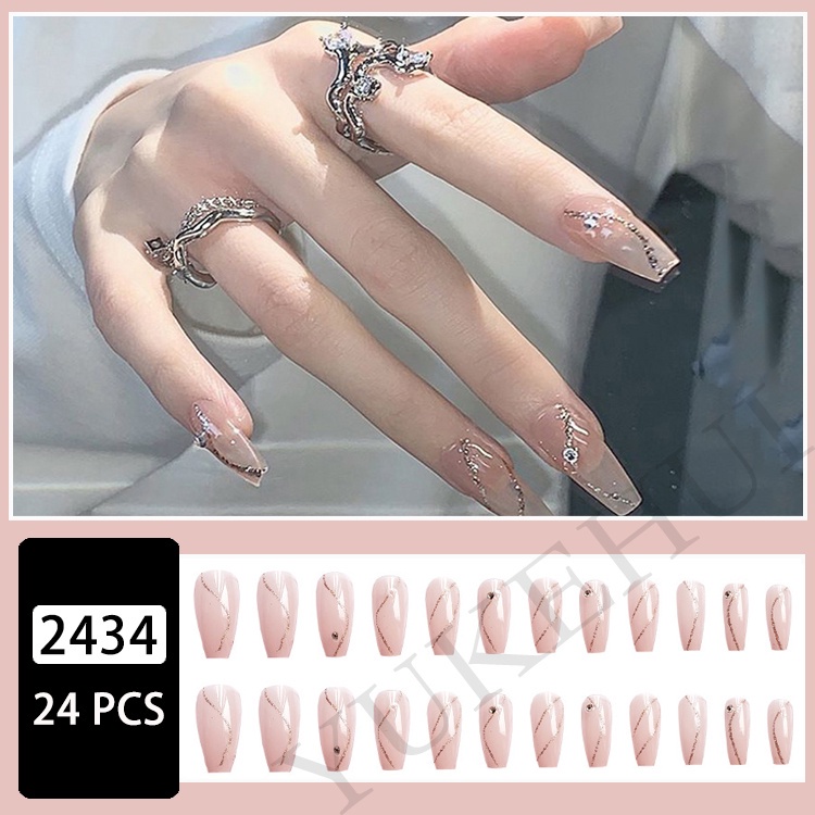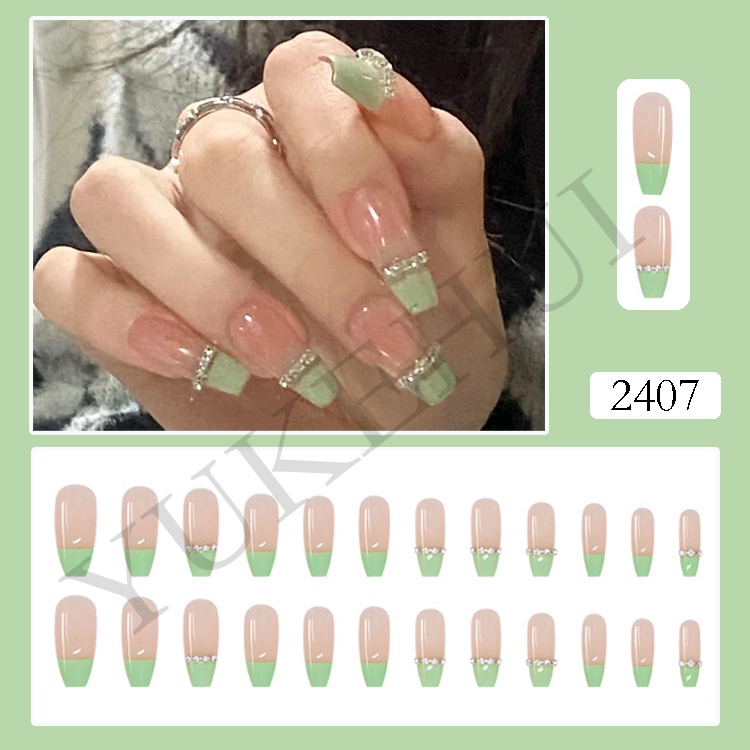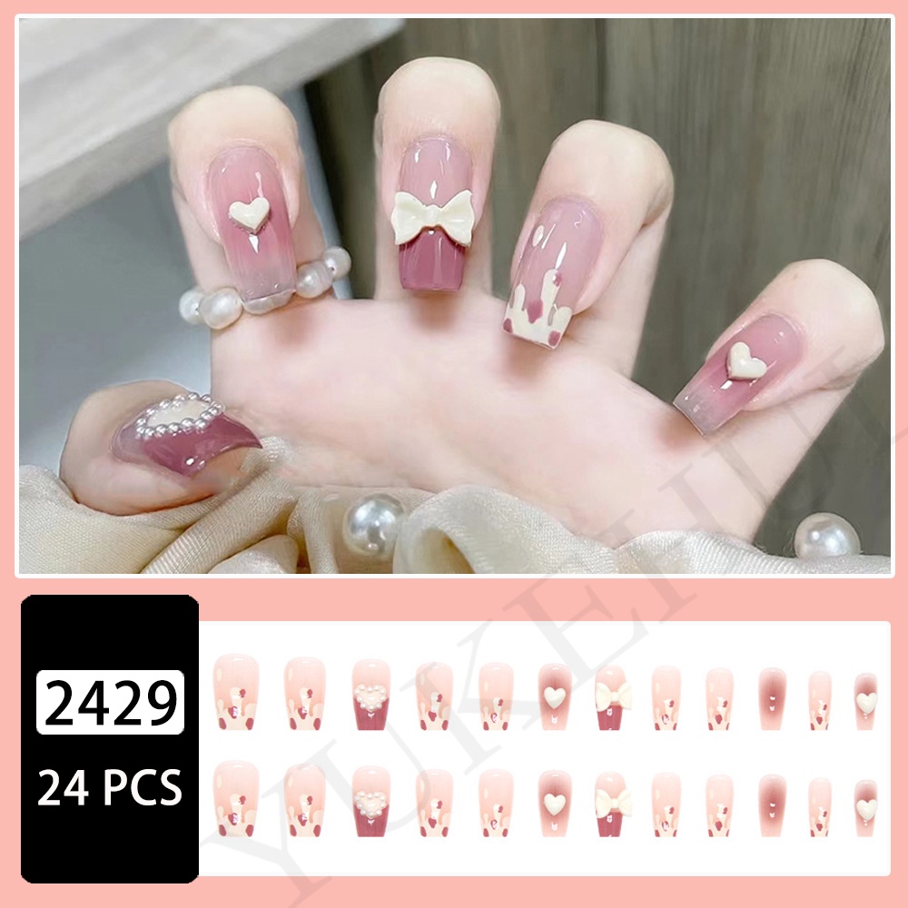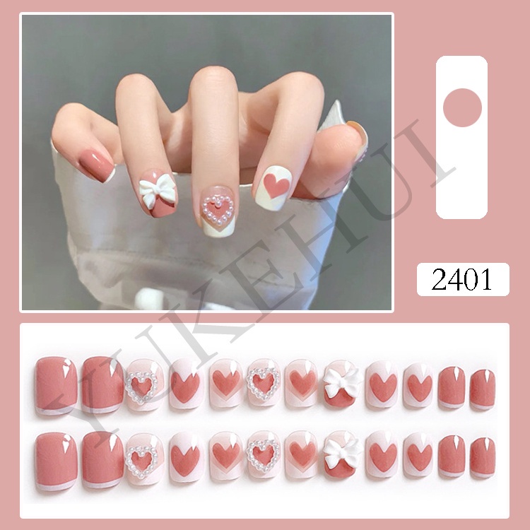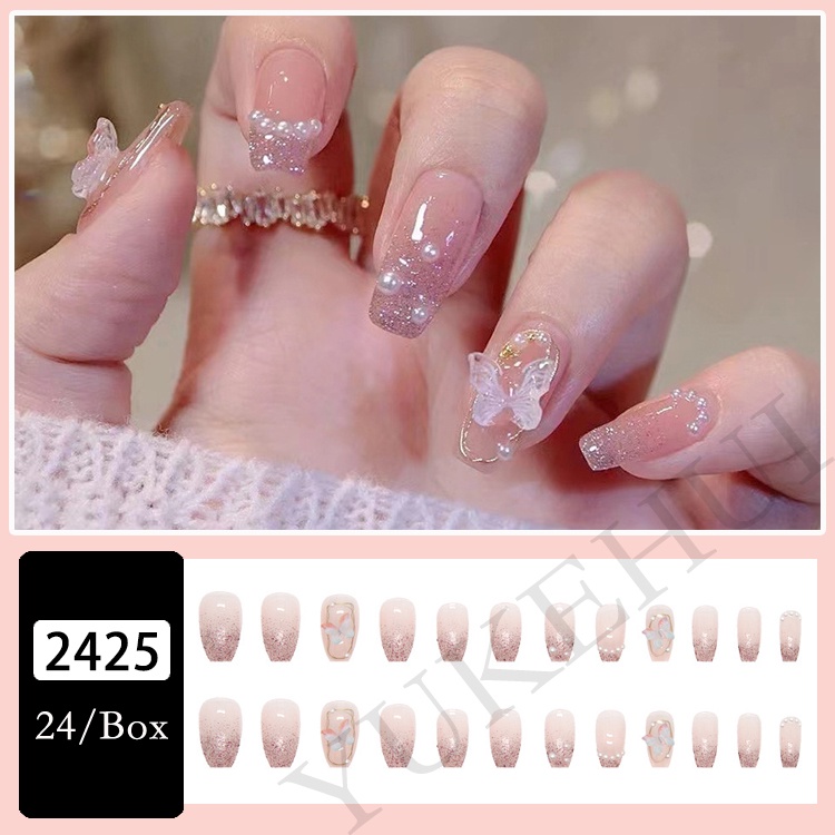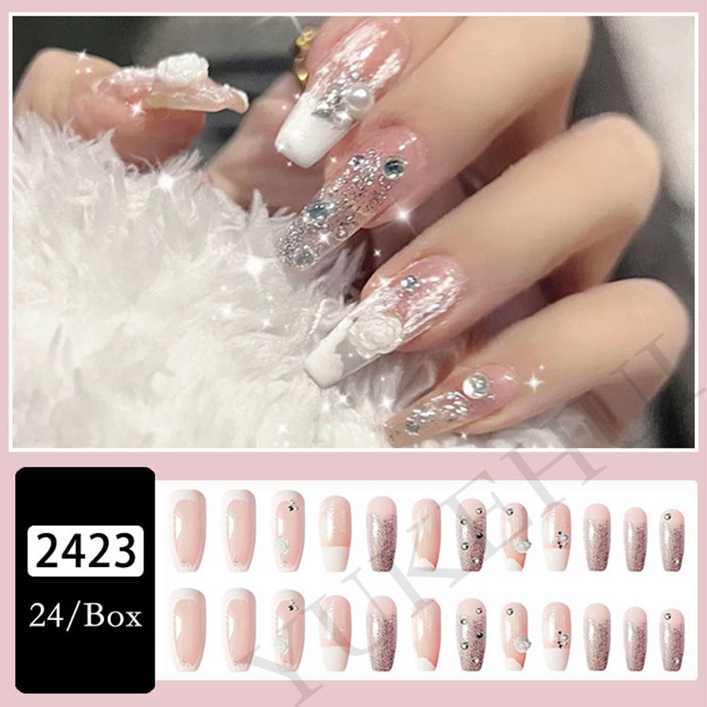 YUKEHUI 24 pcs Artificial Nails With Glue Set Fake Nails Set With Glue Matte Fake Nail GlueNail Sticker Long Nail Art Design