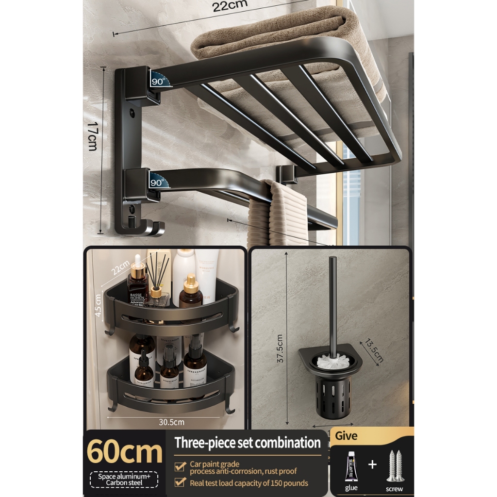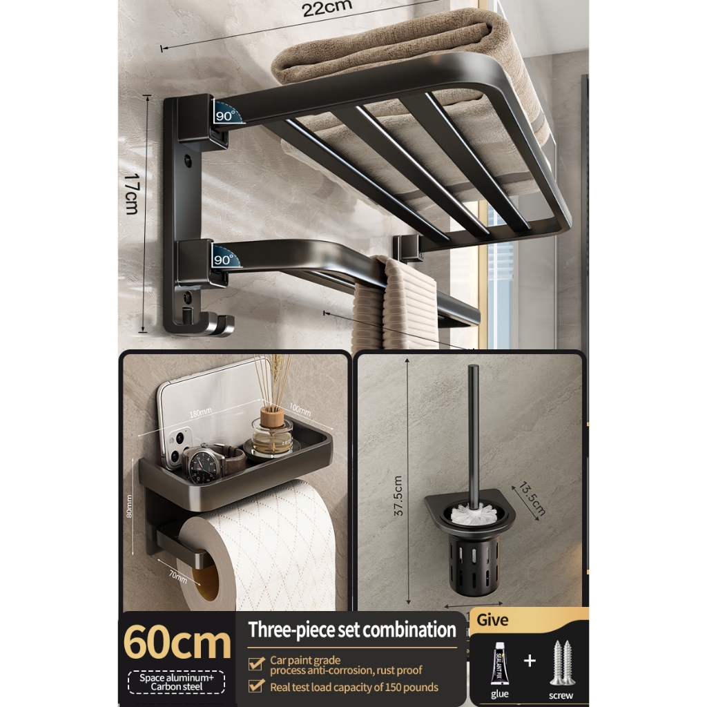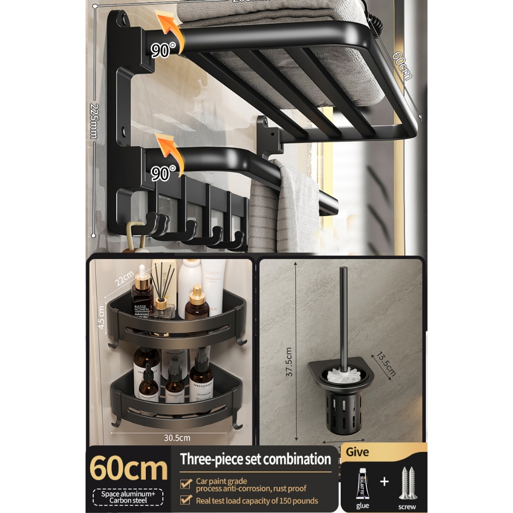 [SG Seller]YUN JIE YA Bathroom Storage Hardware Storage Rack Towel Rack Folding Towel Hanger Toilet Brush Bathroom Accessories