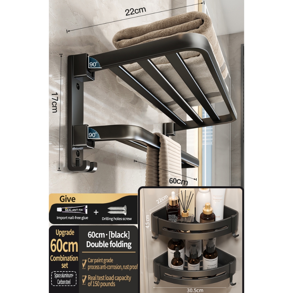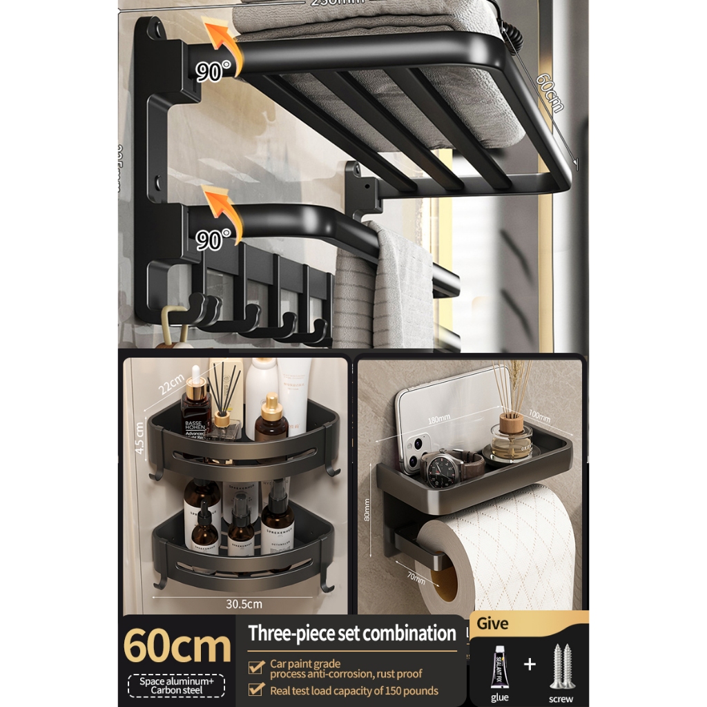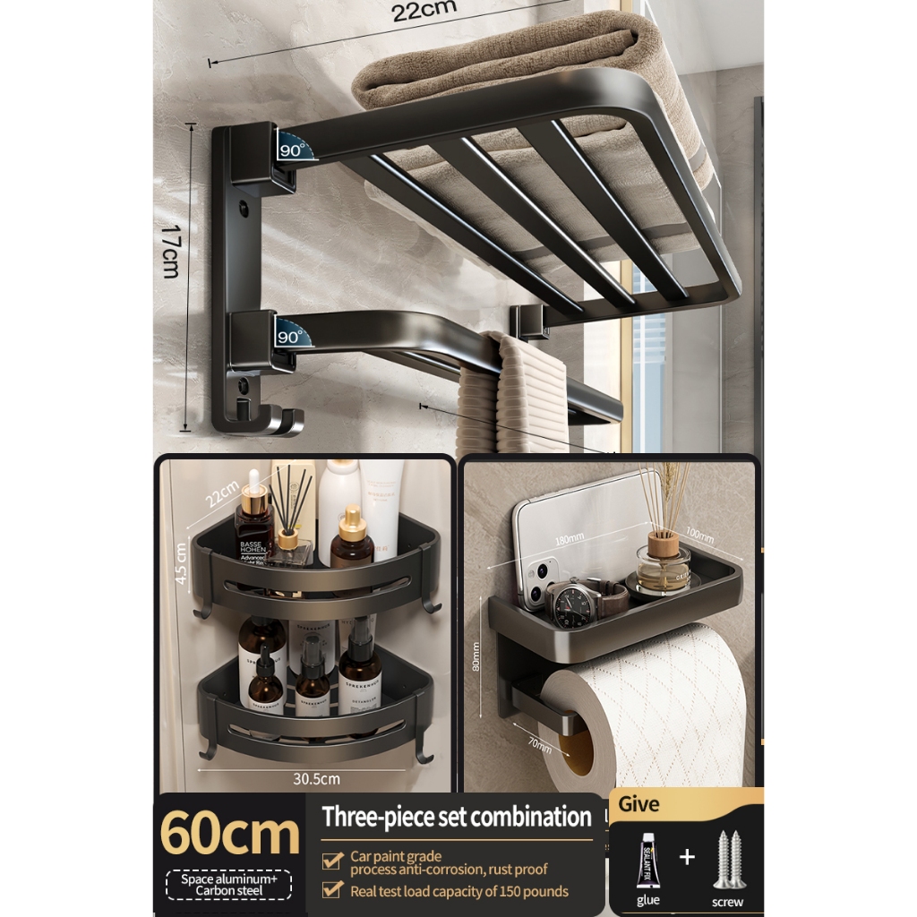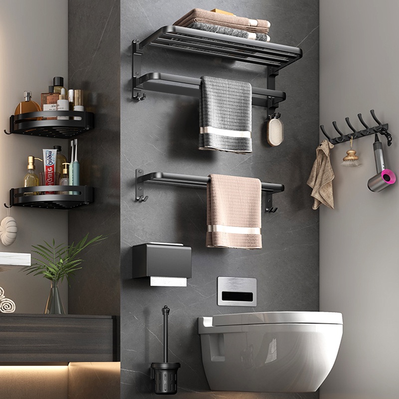 [SG Seller]YUN JIE YA Bathroom Storage Hardware Storage Rack Towel Rack Folding Towel Hanger Toilet Brush Bathroom Accessories