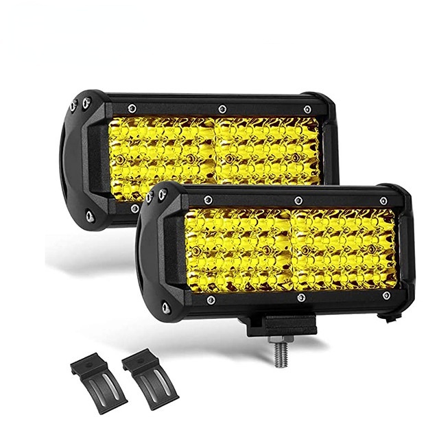 Yellow Light 7 Inch 144W Combo Led Light Bars Spot Flood Beam for Work Driving Offroad Boat Car Tractor Truck 4x4 SUV ATV 12V 24V
