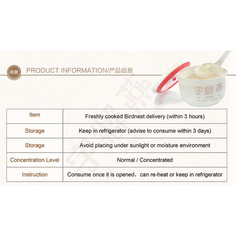 Yu Xiang Yan Fresh Cooked Concentrate Ginseng Bird's Nest Bowl