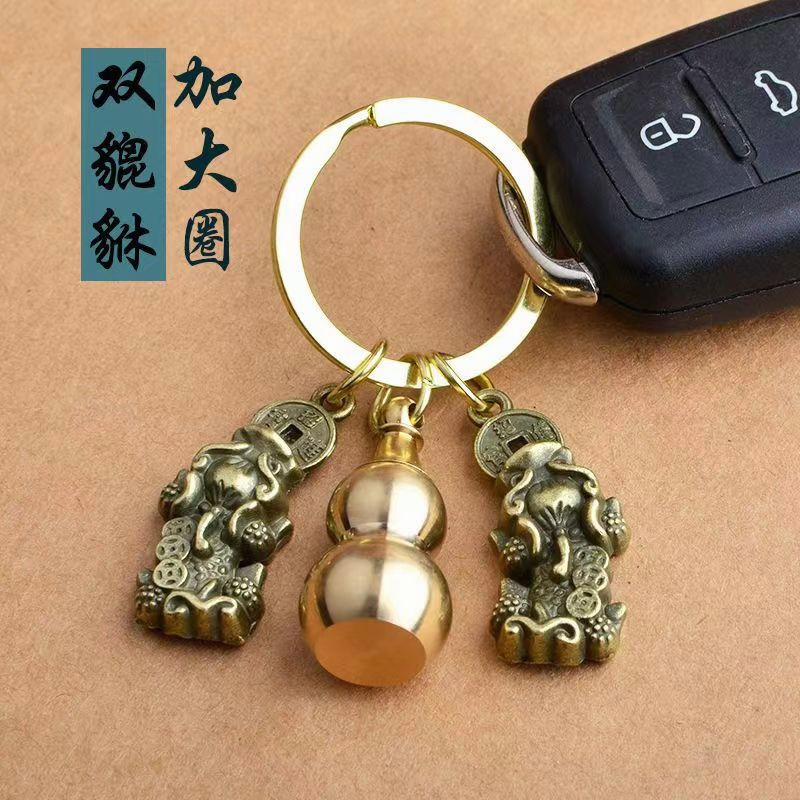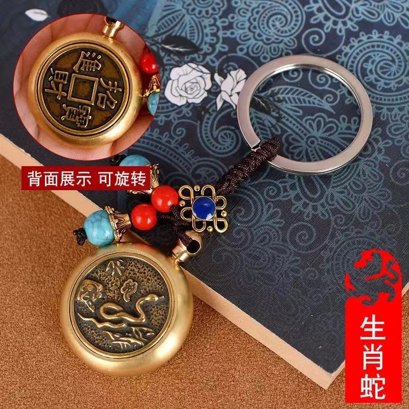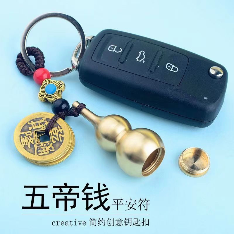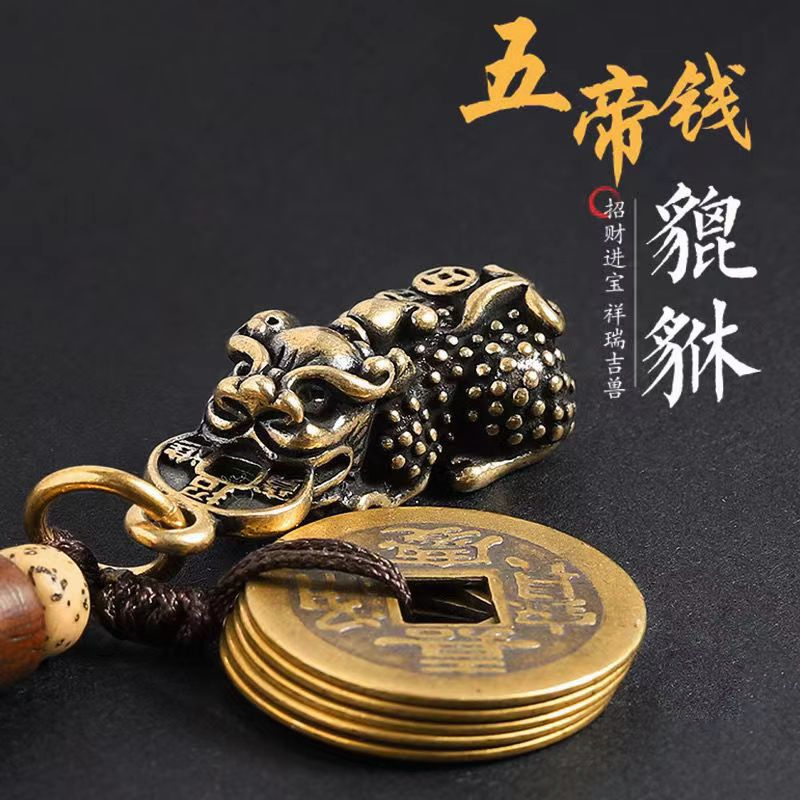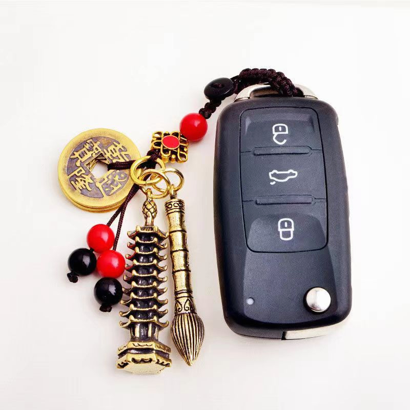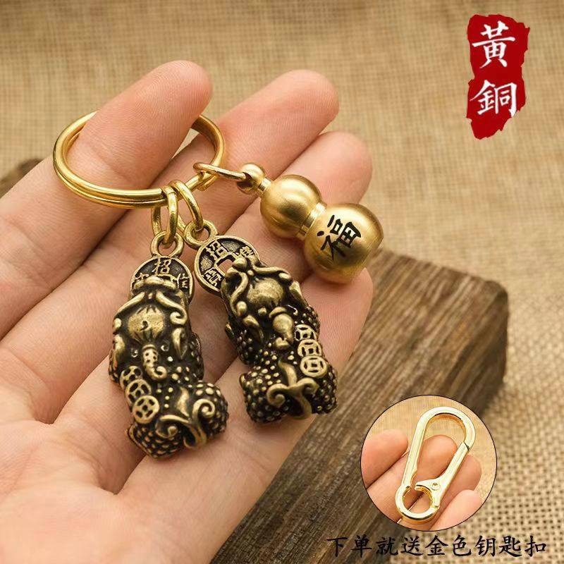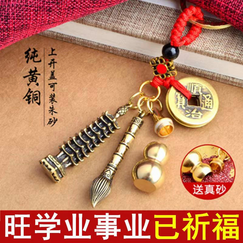 Yuantong Hall FENG SHUI Copper Keychain for Car FENG SHUI Consecrated Pixiu Gourd Wenchang Pagoda Gold List Title Copper Coin Brass Open Cover Zodiac Keychain Money Lucky Cinnabar Five Emperor Money Pixiu Car Keychain Pendant