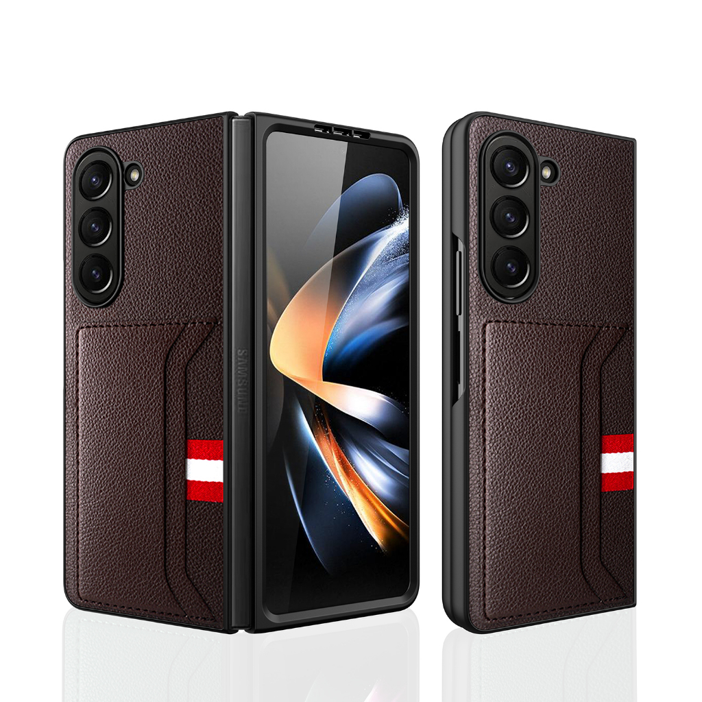 Z FOLD 5 Card Slot Leather Folding Case for Galaxy Z Fold5 FLIP5 with Front Tempered screen protector ZFOLD5 ZFLIP5