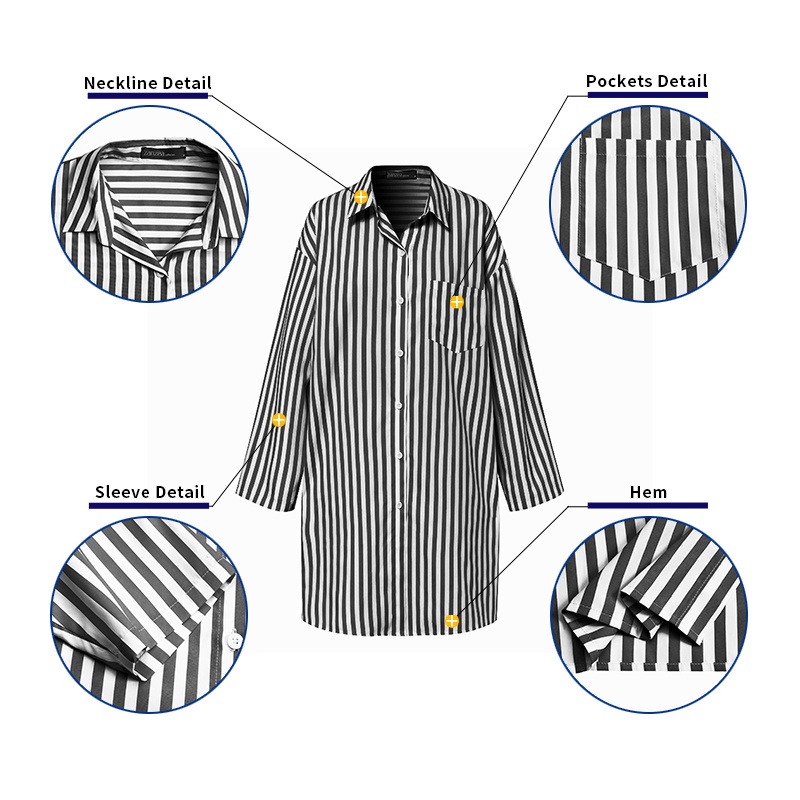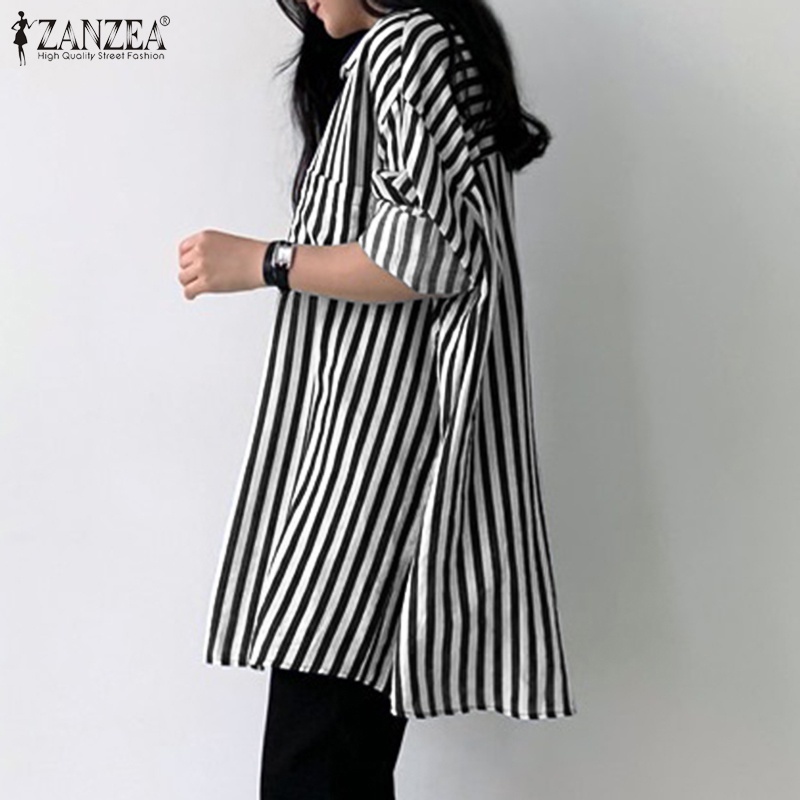 ZANZEA Women Fashion Front Pockets Striped Printed Full Sleeve Casual Loose Blouse