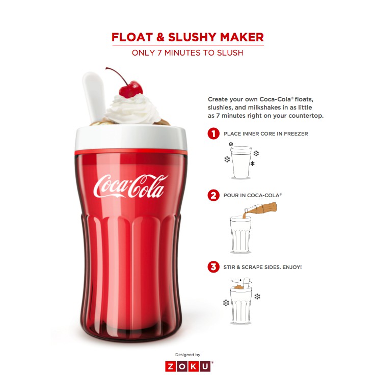 ZOKU Coca-Cola Float & Slushy Maker, Retro Make and Serve Cup with Freezer Core Creates Single-serving Smoothies, Ice