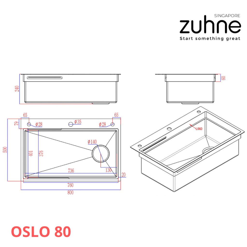 ZUHNE Oslo 2-Ledge Workstation Stainless Steel Single Bowl Kitchen Sink with Accessories (Top Mount or Flush Mount)