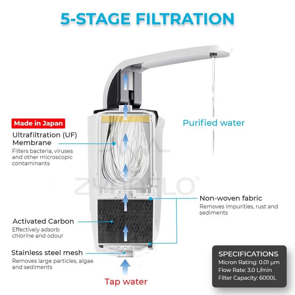 🇸🇬 ZYNAFLO Countertop Faucet Water Filter Purifier With 5-Stage UF Filter