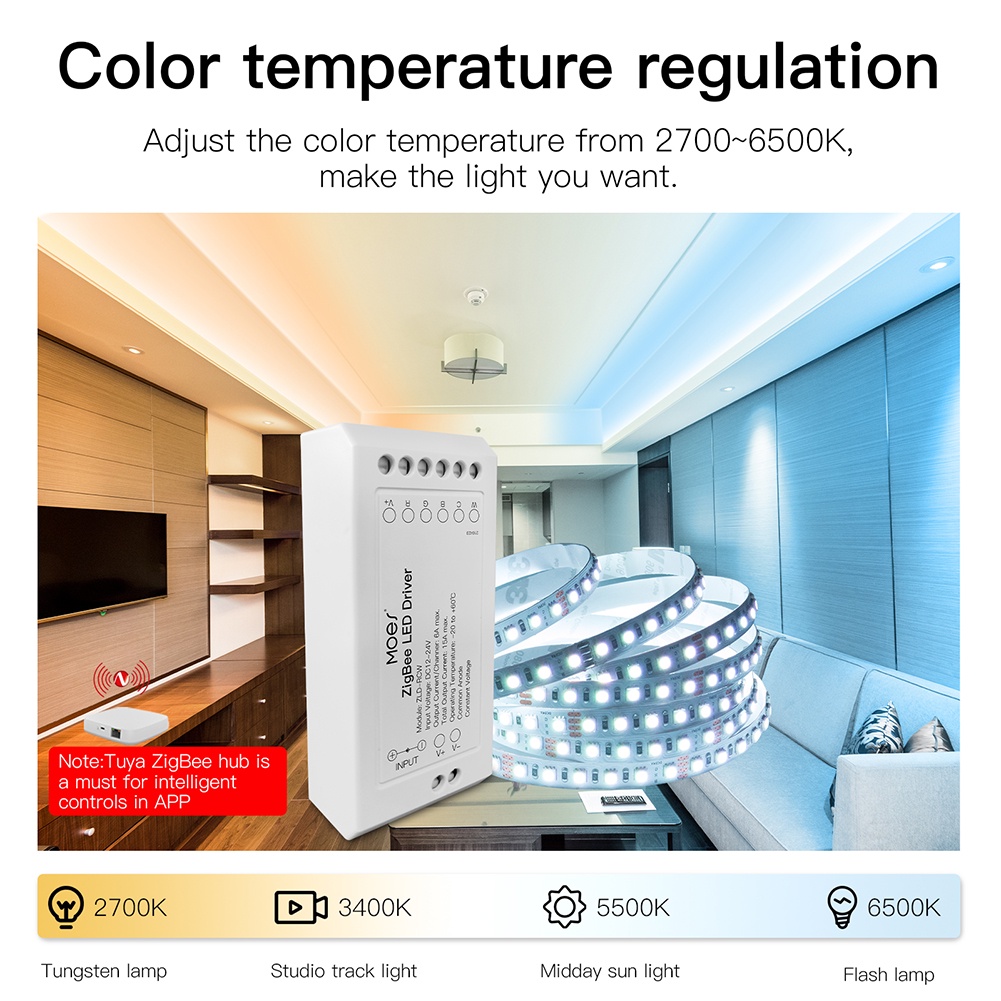 ZigBee LED Controller Light Strip RGB CCT Dimmer Music Sync Tuya Smart App Control with Alexa Google Remote Control