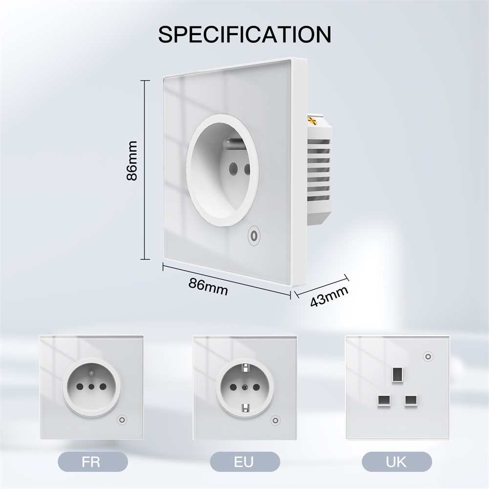 ZigBee Smart Wall Socket Glass Panel Outlet Power Monitor tuya Wireless Control Mesh with Timer Alexa Google Home voice UK EU FR
