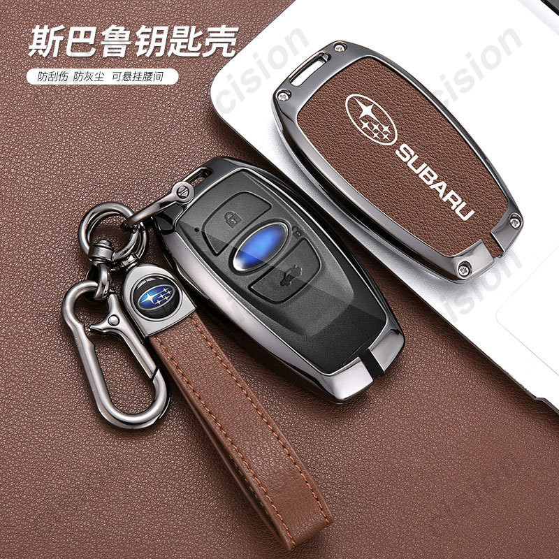 Zinc Alloy Genuine Leather Car Key Case Cover Smart Remote Fob Shell Keychain For Subaru BRZ Forester XV Crosstrek Impreza Outback Levorg WRX STi 2019 2020 2021 2022 2023 2024
