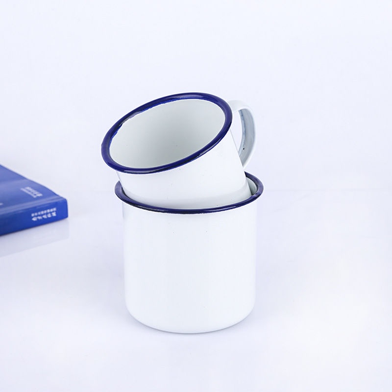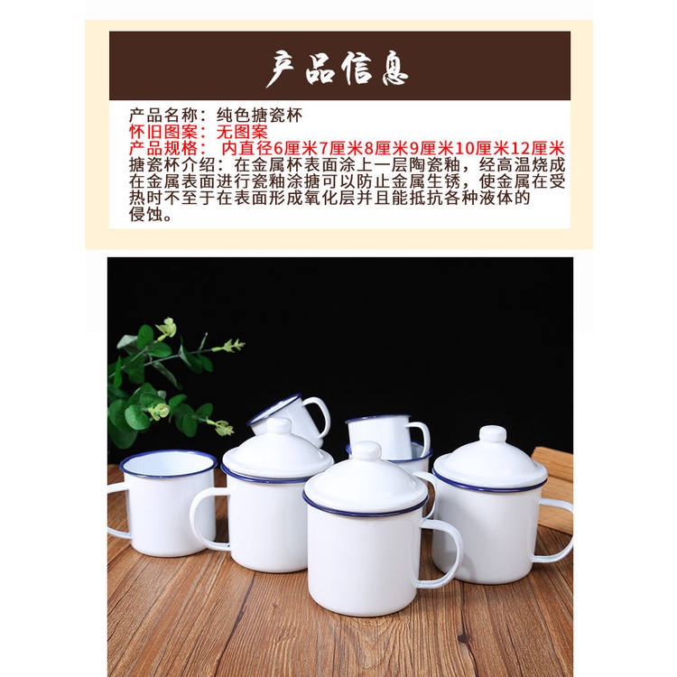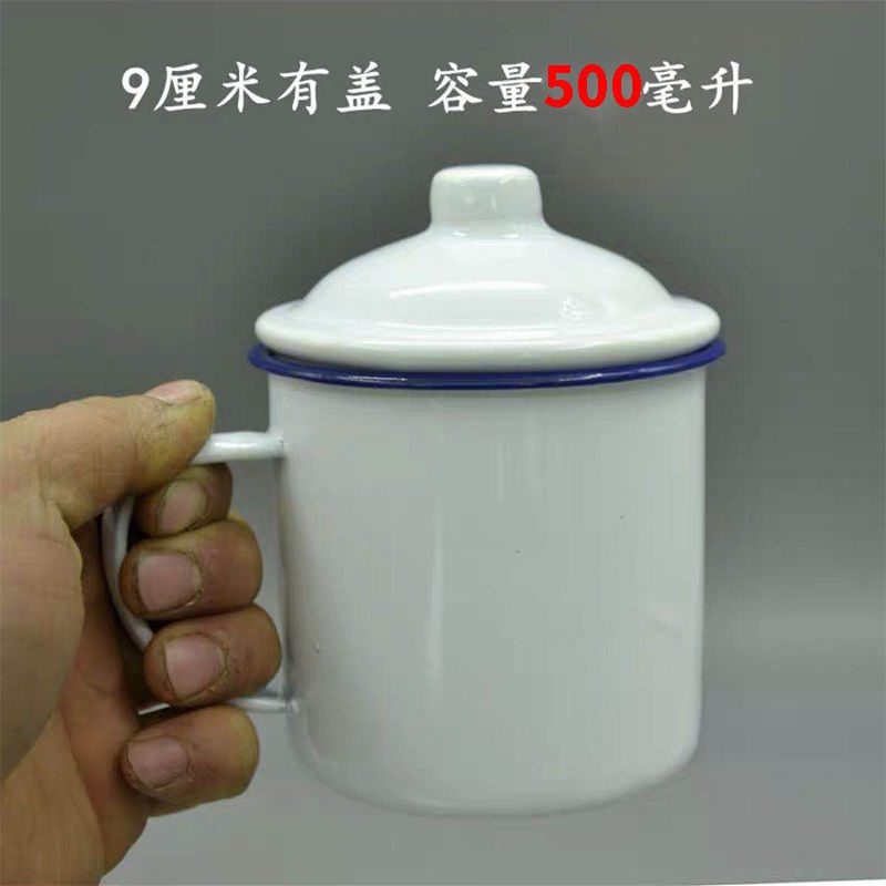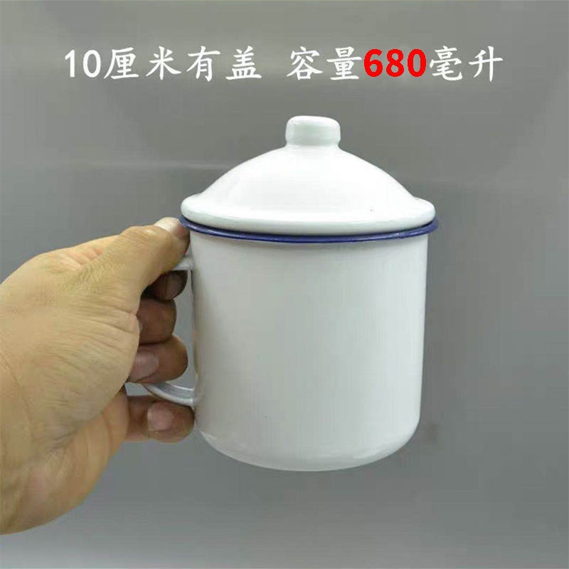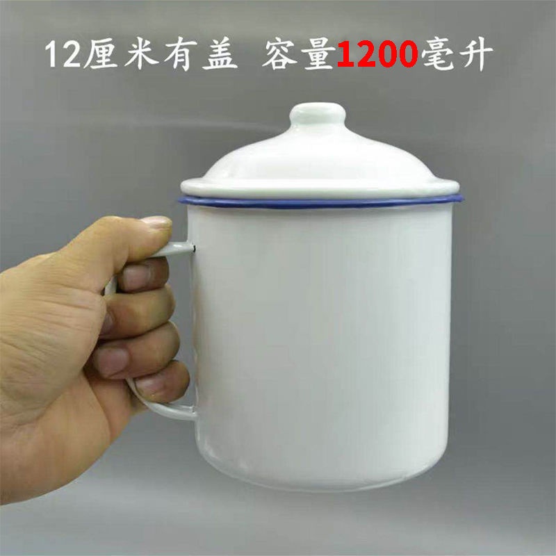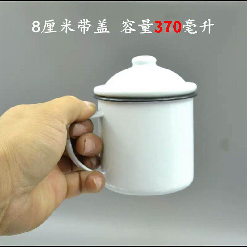 Zinc Cup / Enamel Mug / Old School Cup / Souvenir Cup / 80's [6-12] Classic Old-Fashioned Big Tea Mug Pure White Enamel Cup with Cover Iron Tea Jar